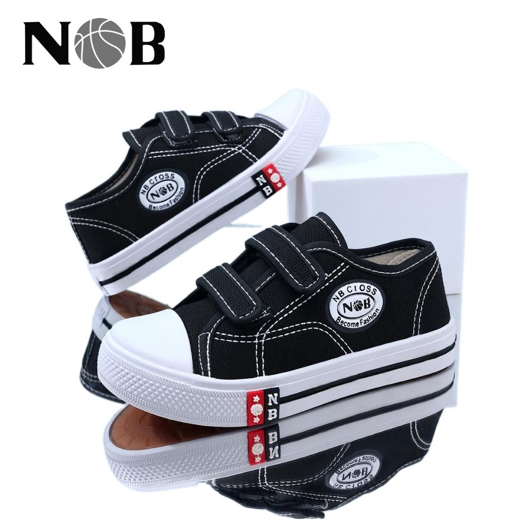 NOB SHOES CROSS Sepatu Sekolah NB Anak TK SD Model Perekat Cewek & Cowok Size 29-38