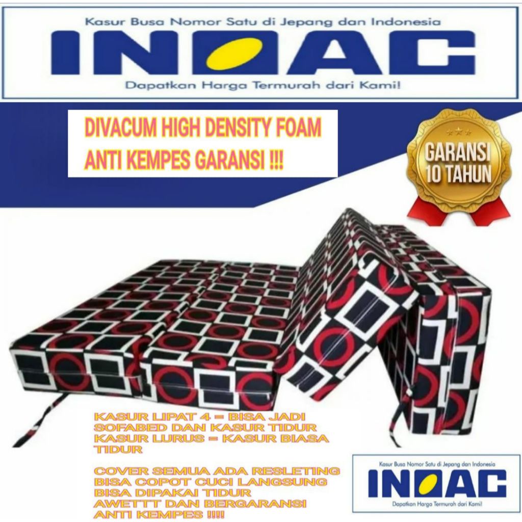 Kasur Busa Lipat 3 INOAC Garansi 10 Tahun PREMIUM HIGH DENSITY FOAM TEBAL 10 CM