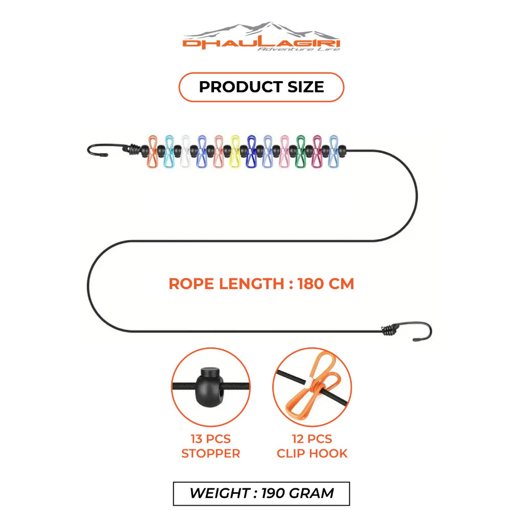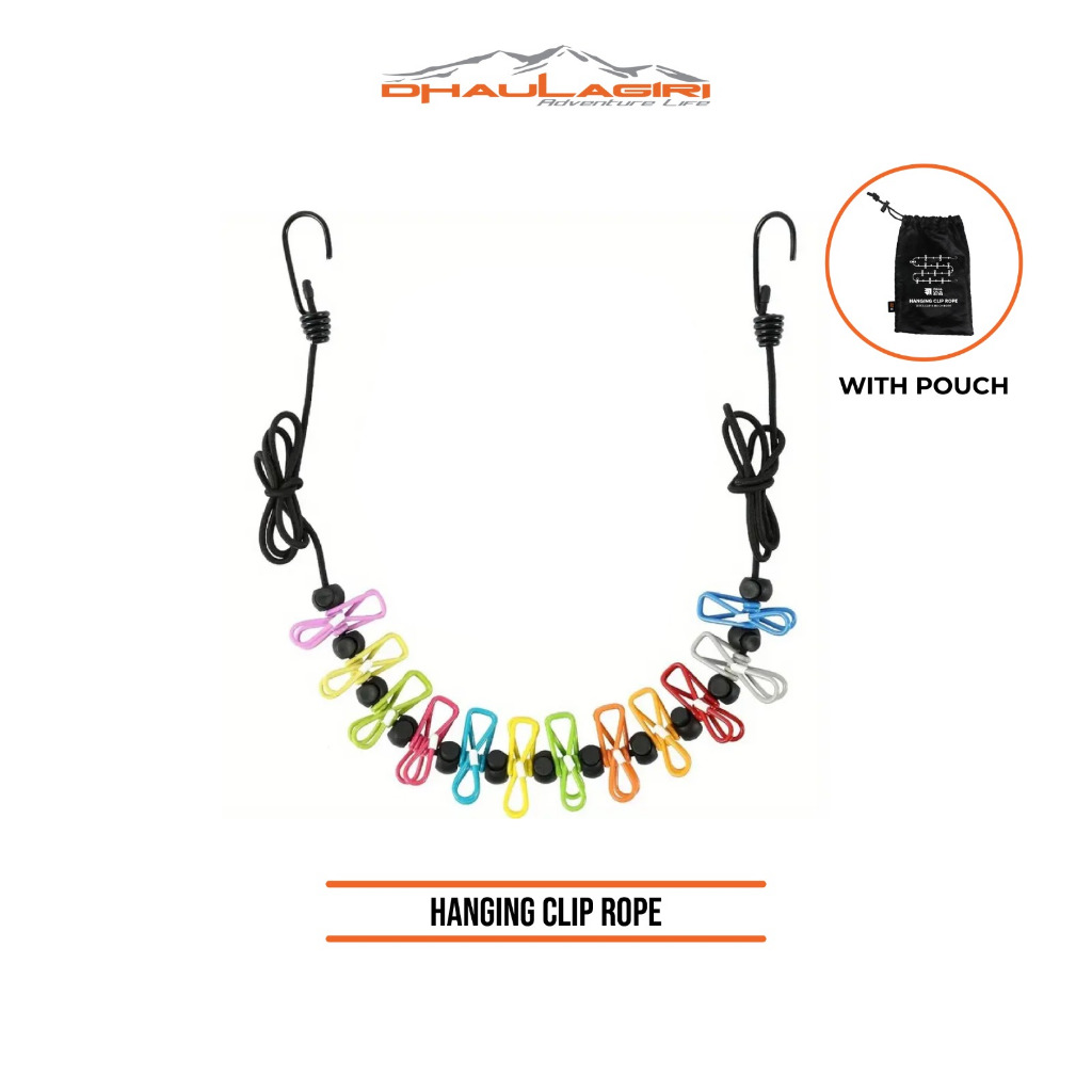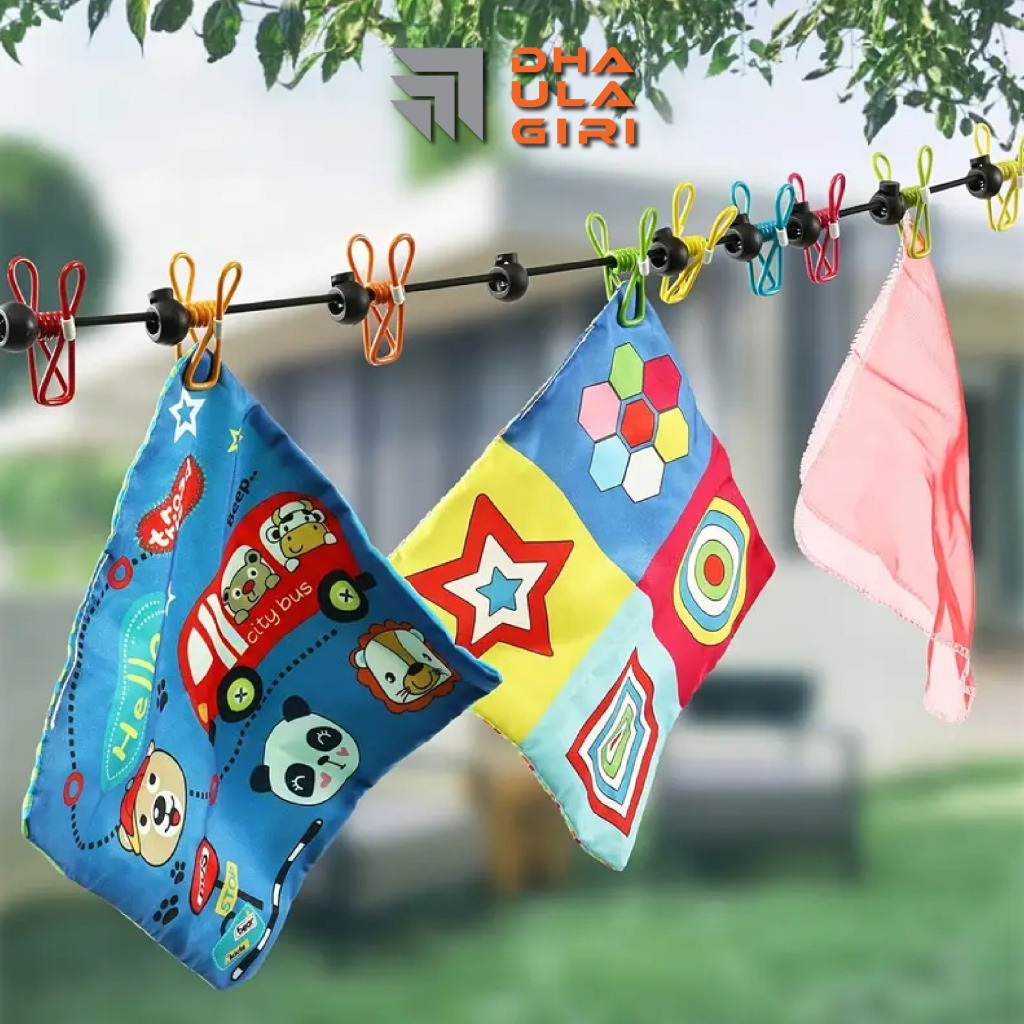 Dhaulagiri Hanging Clip Rope – Tali Jemuran Camping Lipat Portabel 180cm dengan 12 Klip Warna