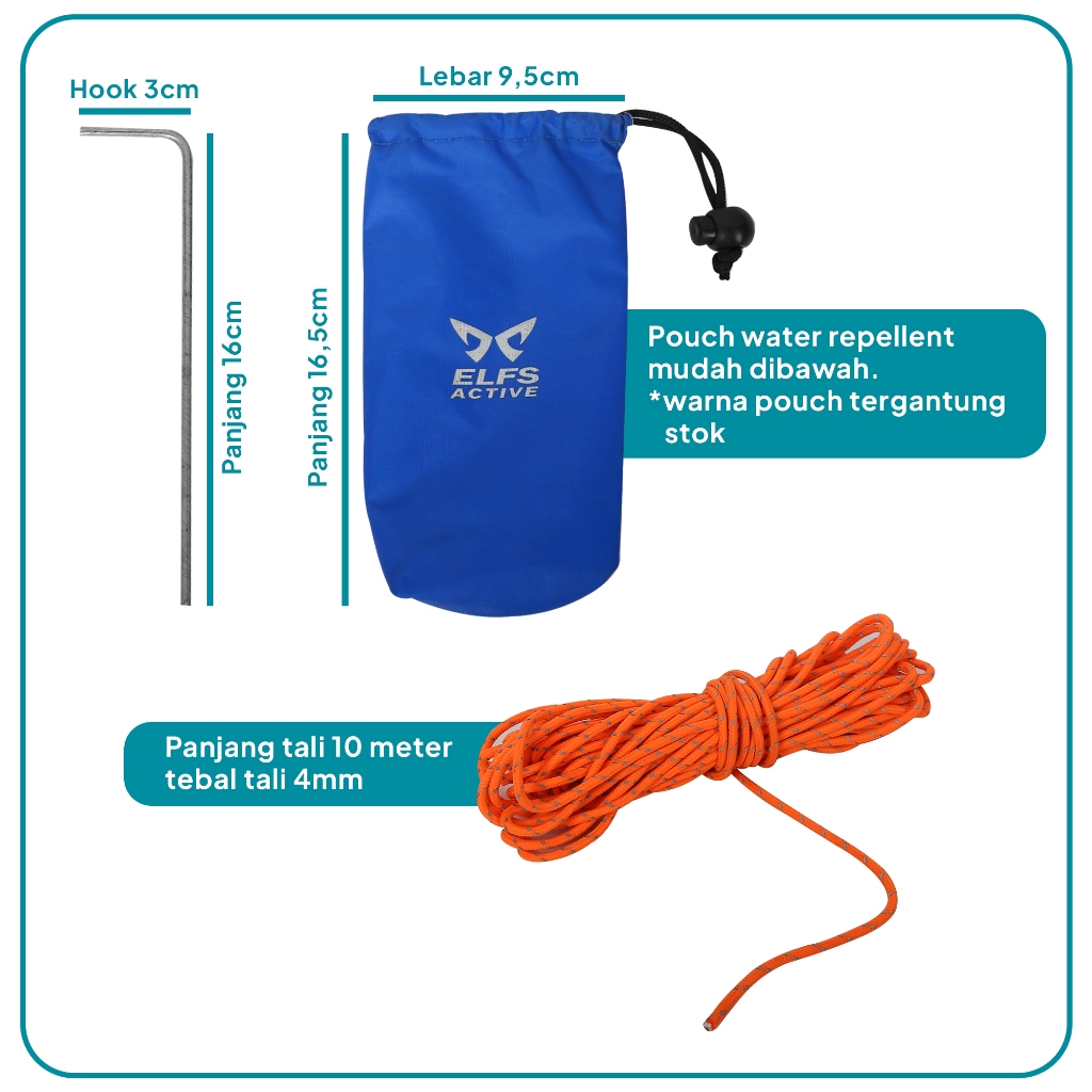 Elfs Active Pasak + Tali Perusik Reflective + Guyline Glow in the Dark