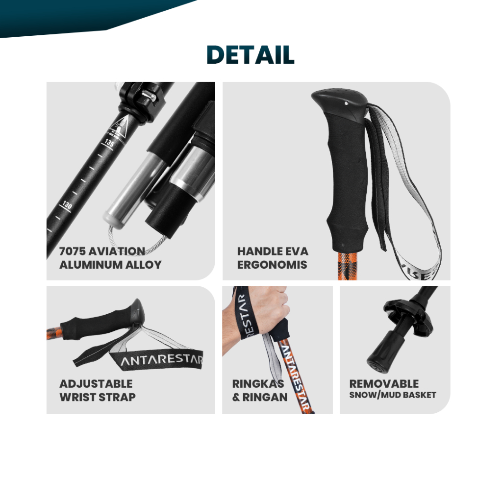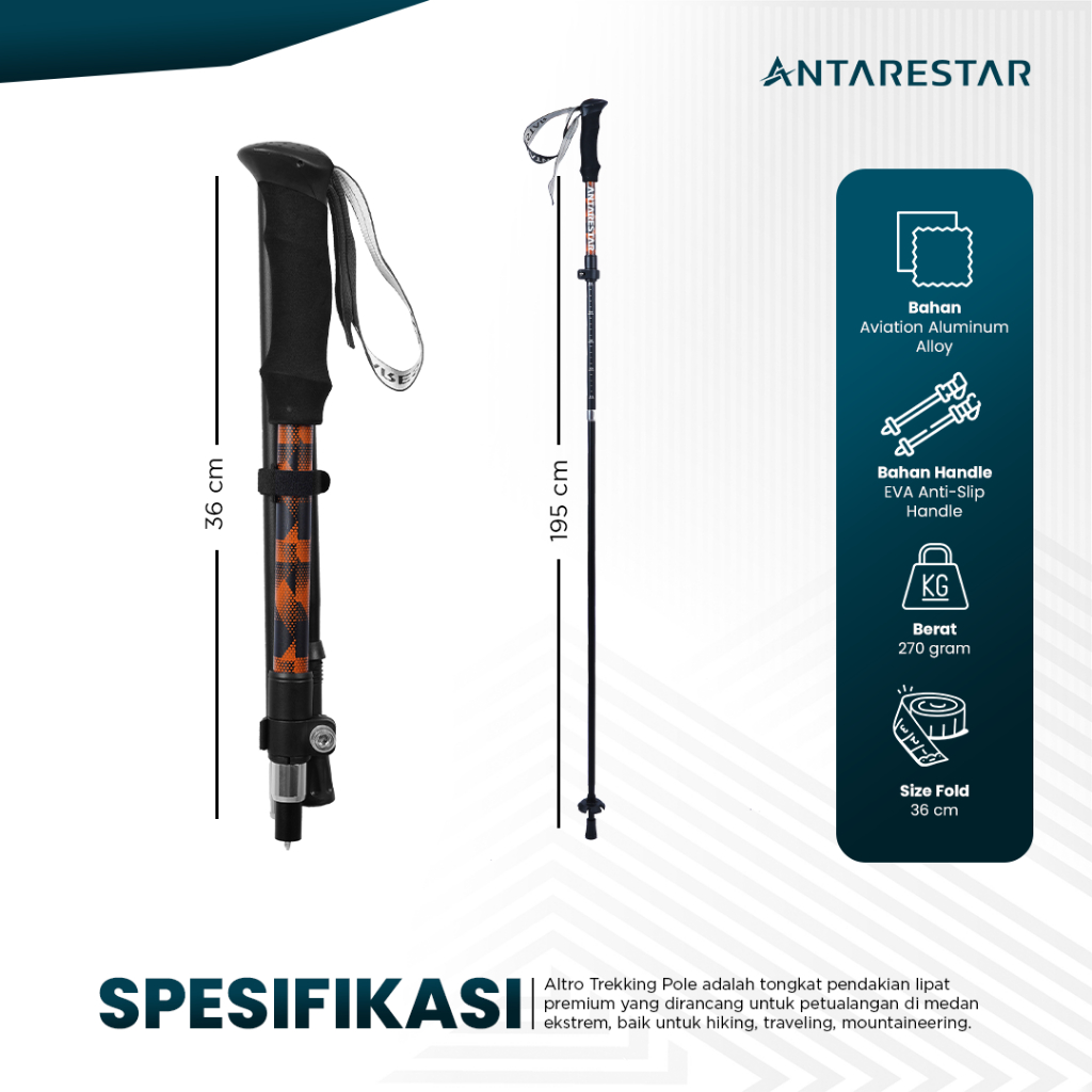 ANTARESTAR Official - Trekking Pole Lipat Altro Tongkat Mendaki Outdoor Hiking Camping Tongkat Hiking Trekking Pole Tongkat Treking Gunung
