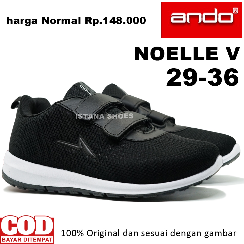 Sepatu Anak Sekolah Perempuan Laki Laki Cowok Cewek Ando Josie Hitam Putih PAUD TK SD Perekat Sneakers