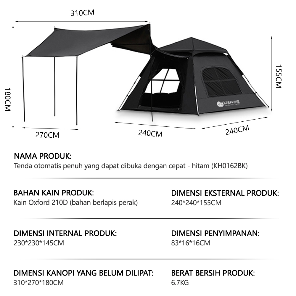 KEEPHIKE tenda hidrolik bukaan otomatis || Kapasitas 3-4 orang, tenda lipat UVF50+