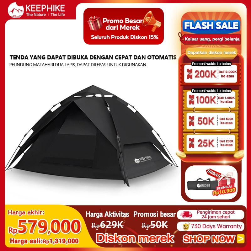 KEEPHlKE tenda dua lapis outdoor || Tenda lipat portabel untuk berkemah tahan air, kapasitas 6 orang