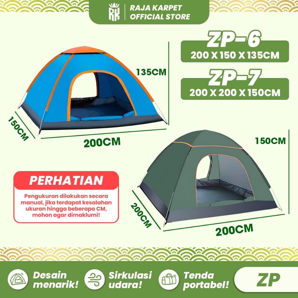 RAJA KARPET - Tenda Camping lipat Kapasitas 2-3 Orang Tenda Otomatis Outdoor & Indoor Tenda Gunung