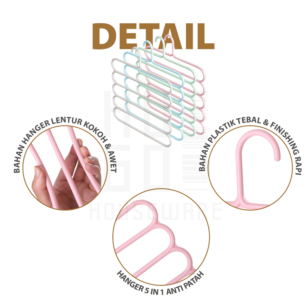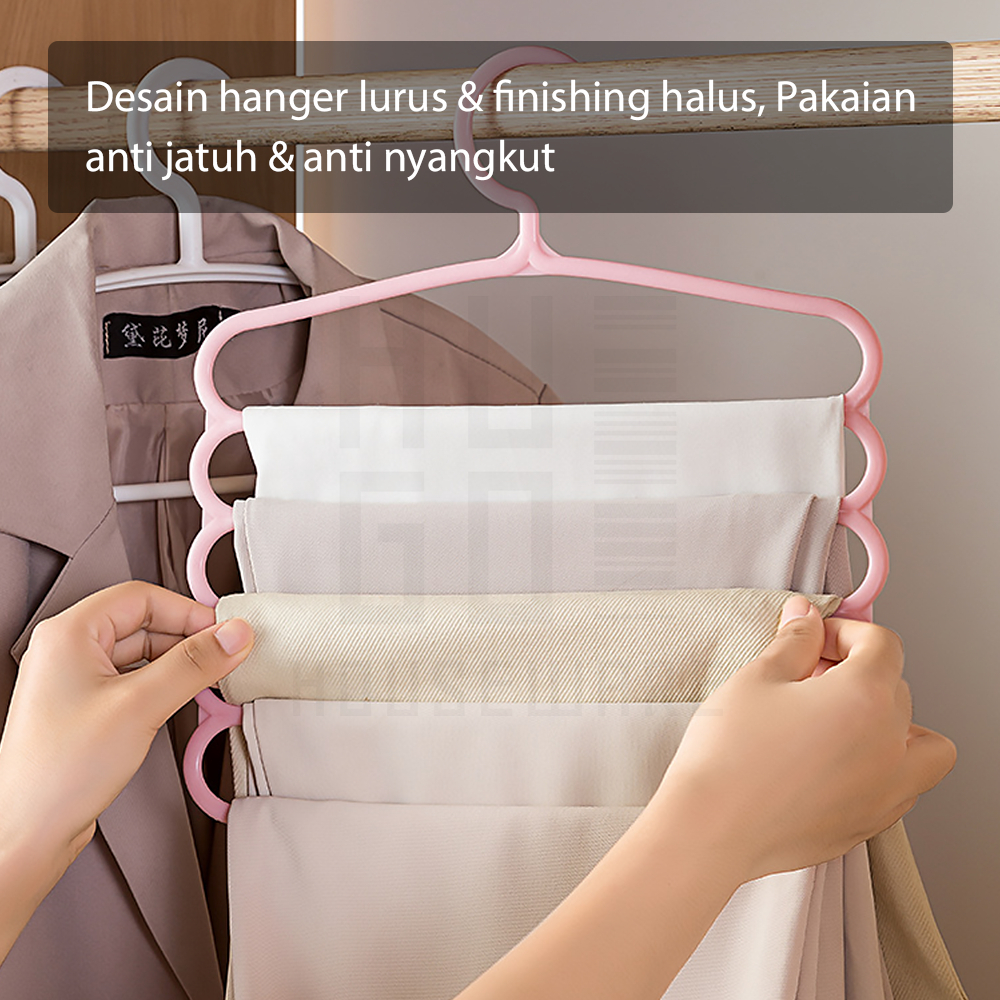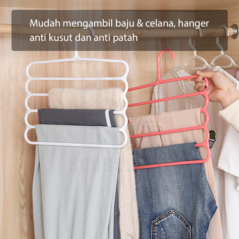 HUGO Gantungan Hanger 5 Susun Serbaguna Gantungan Jilbab Gantungan Celana Baju Pakaian Plastik Multifungsi