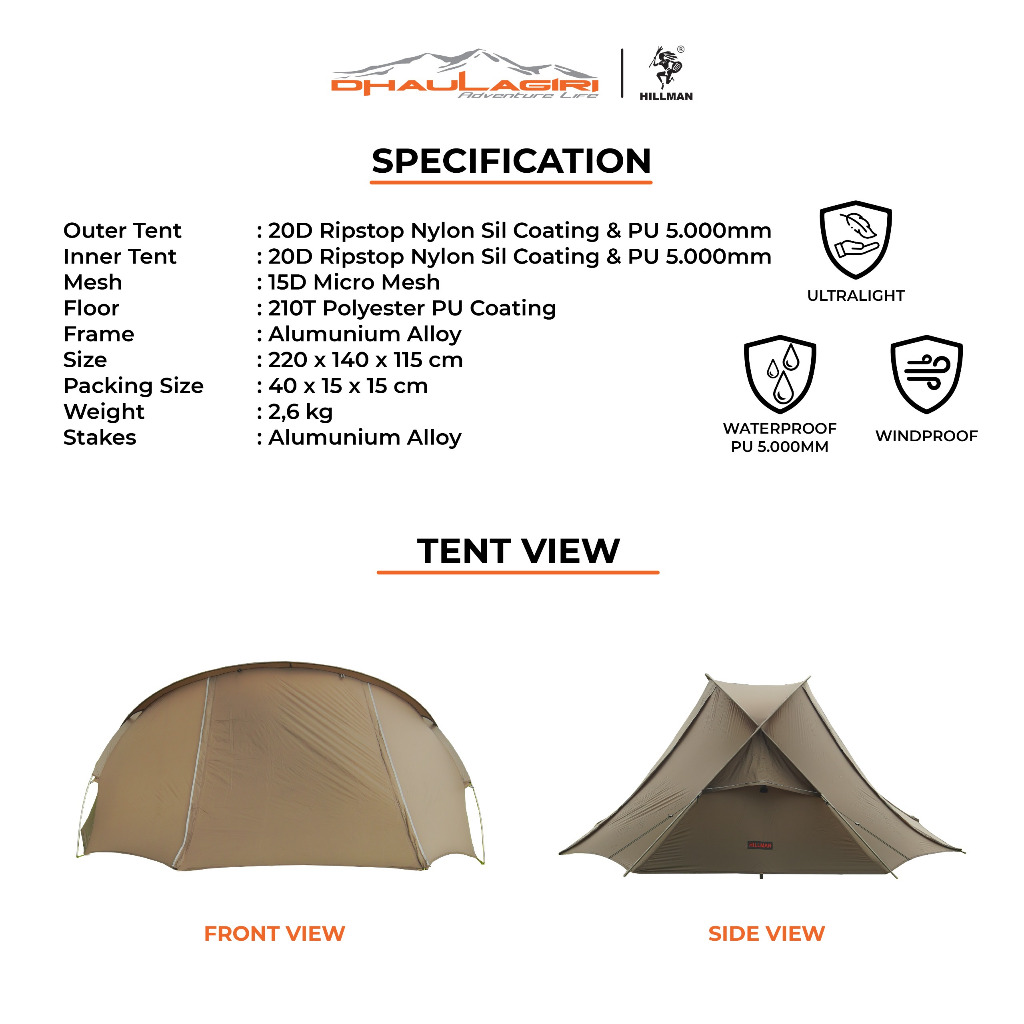HILLMAN WIND UP 2 - Tenda Ultralight Kapasitas 2 Orang / Tenda Hiking dan Camping