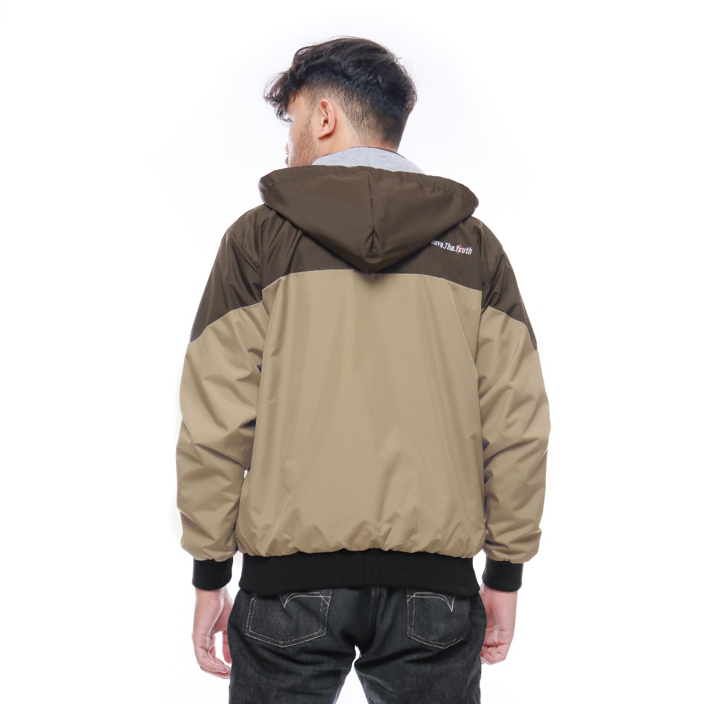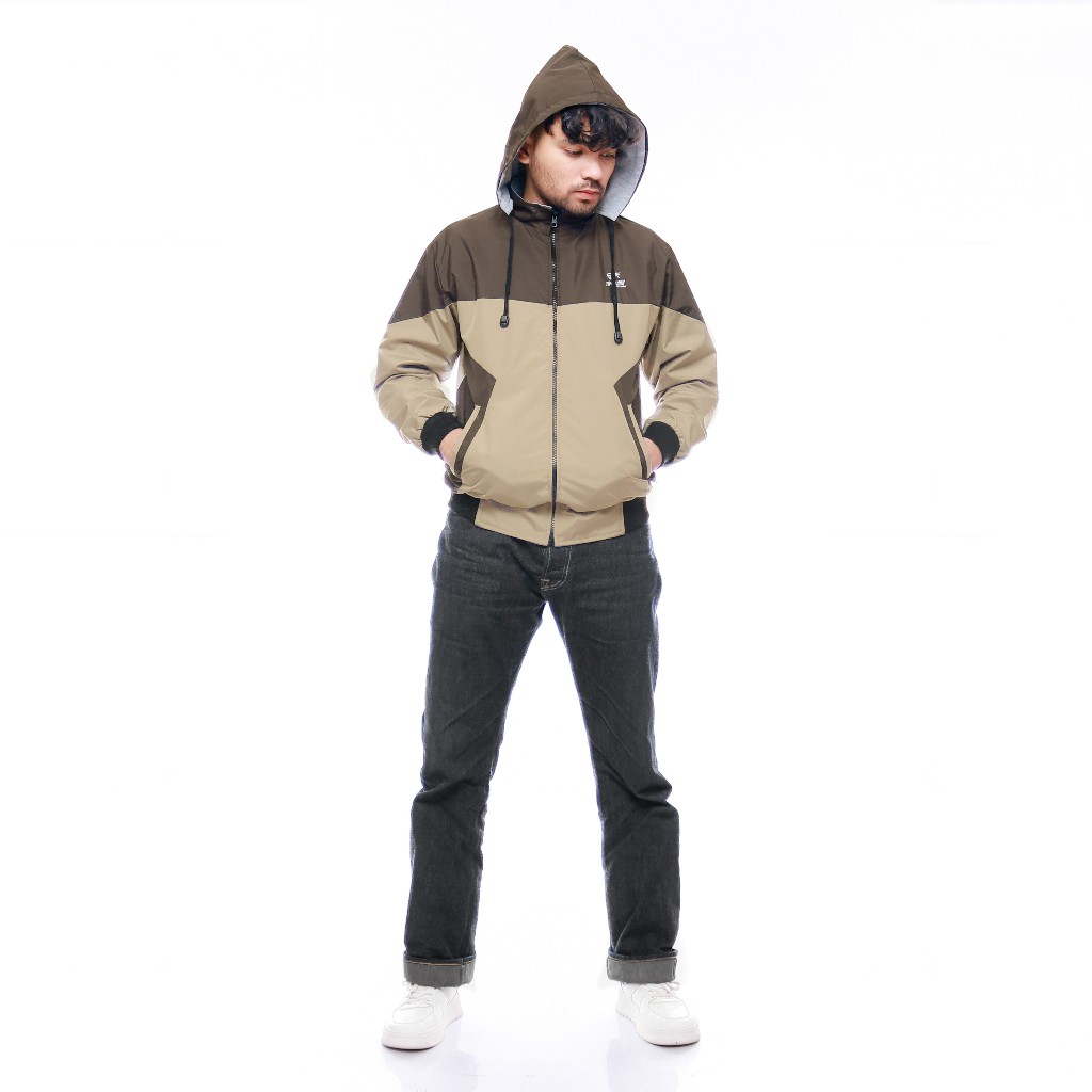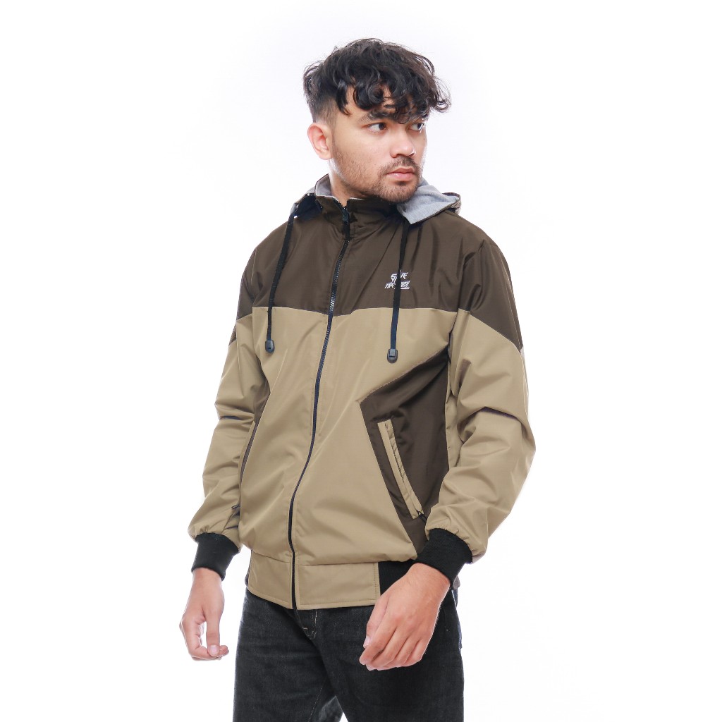 Jaket Bolak Balik Parasut Taslan Pria dan Wanita Windbreaker Waterproof Terbaru Cokelat
