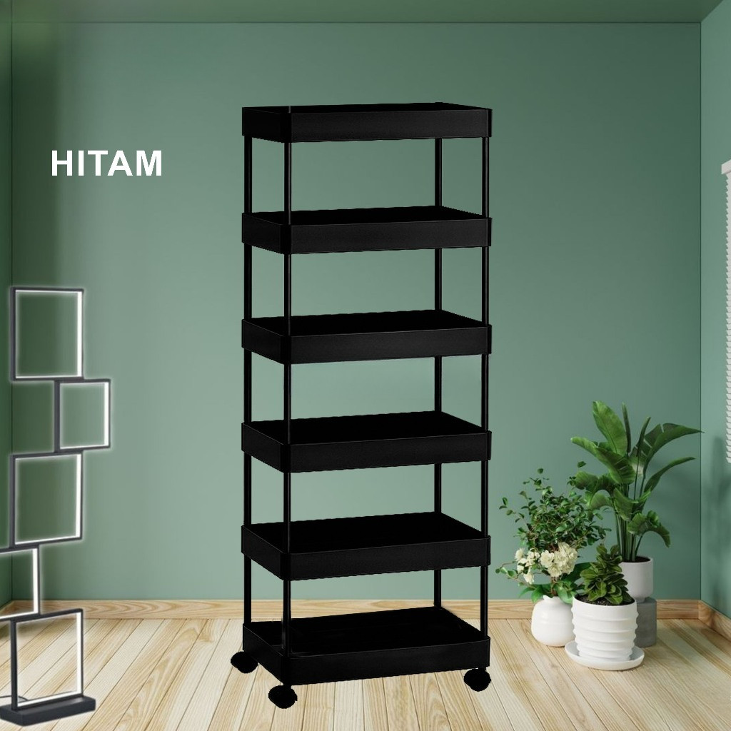 Square rak dapur putih rak kamar mandi rak troli rak susun serbaguna rak dorong 5 tingkat dengan roda