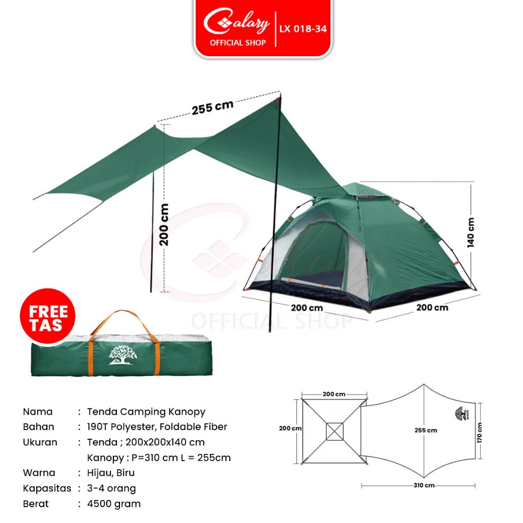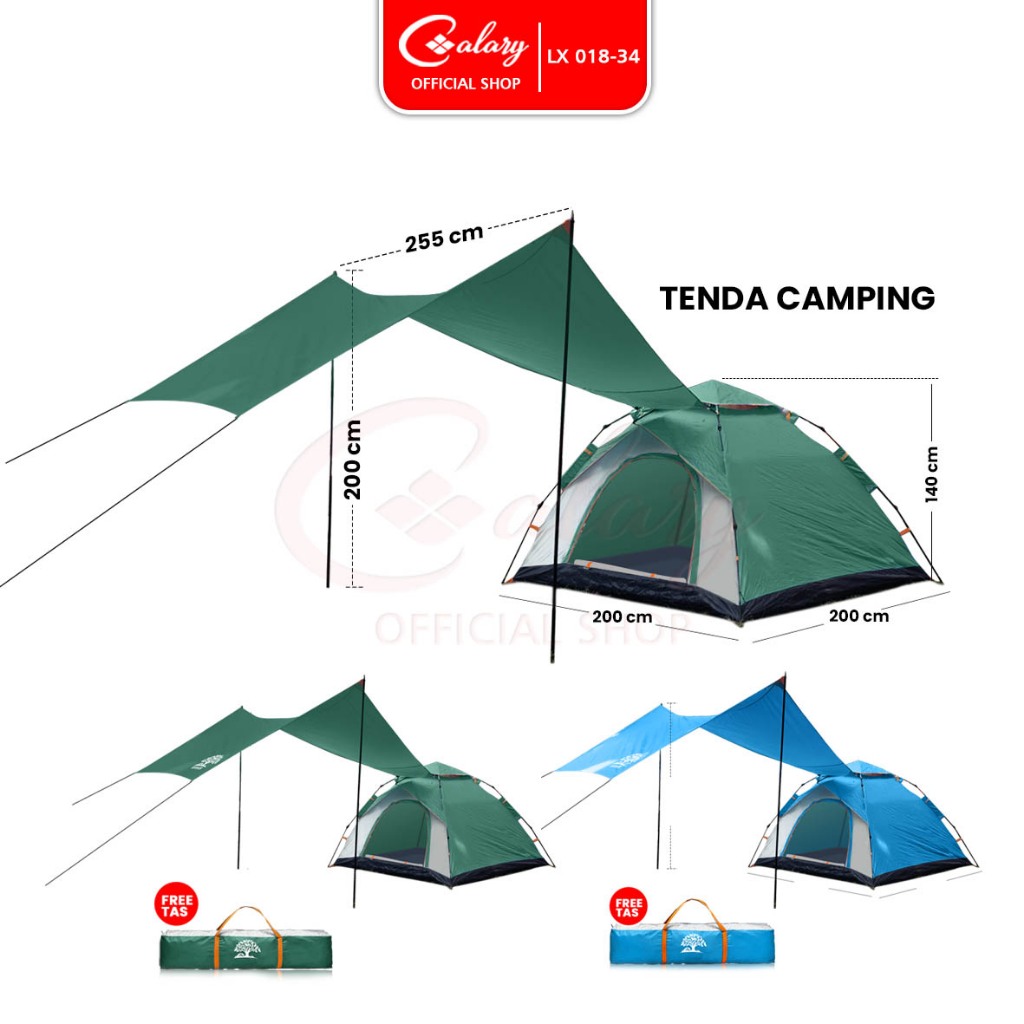𝐂𝐀𝐋𝐀𝐑𝐘 Tenda Camping Mendaki Piknik 3in1 3-4 Orang Kanopi Anti Panas Tent Kemah Portabel Outdoor 018-34