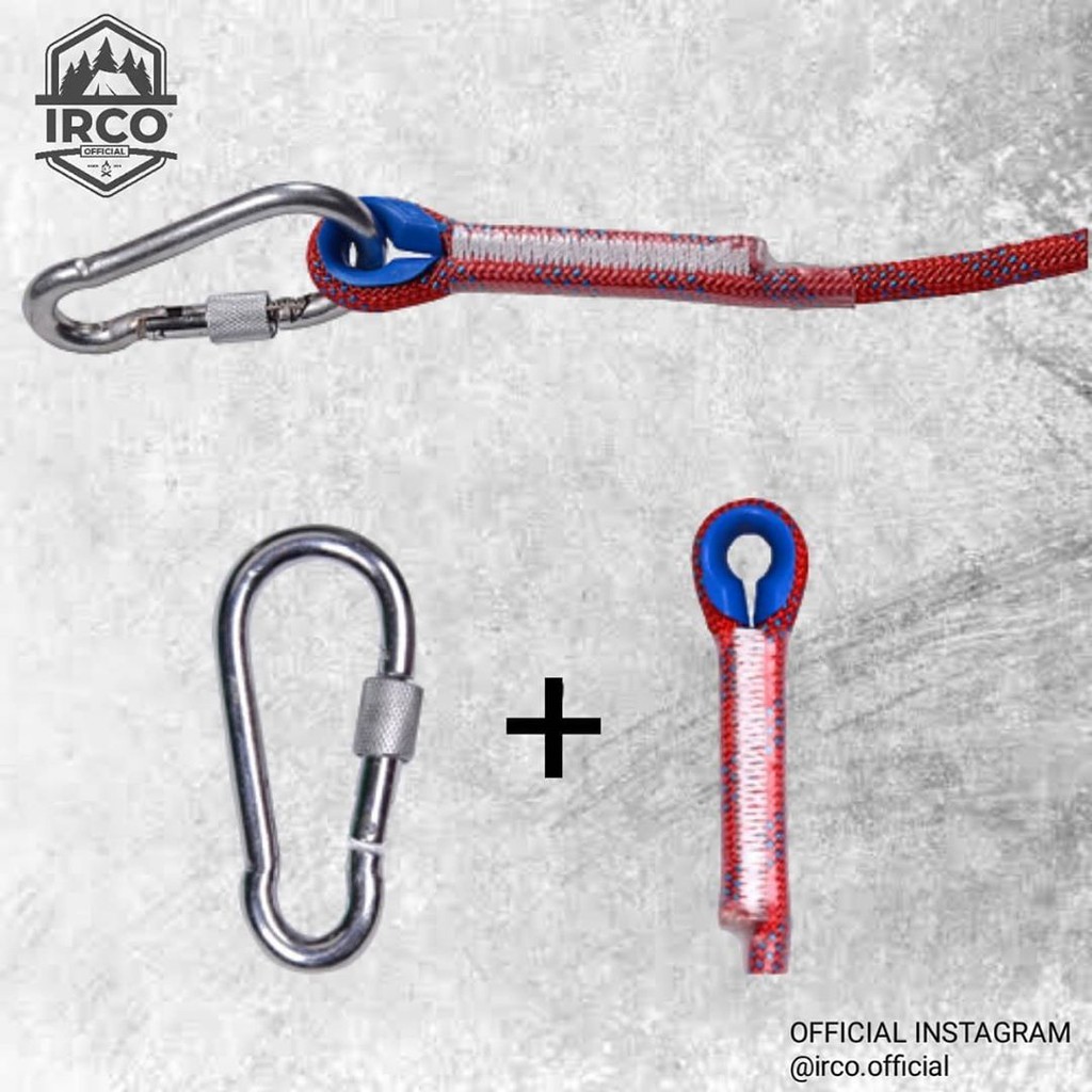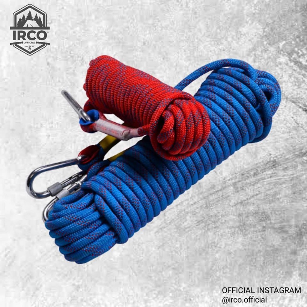 IRCO Tali Paracord Climbing Panjat Tebing 20 M Tebal 10mm Free Carabiner Stainless Steel Tahan 300kg