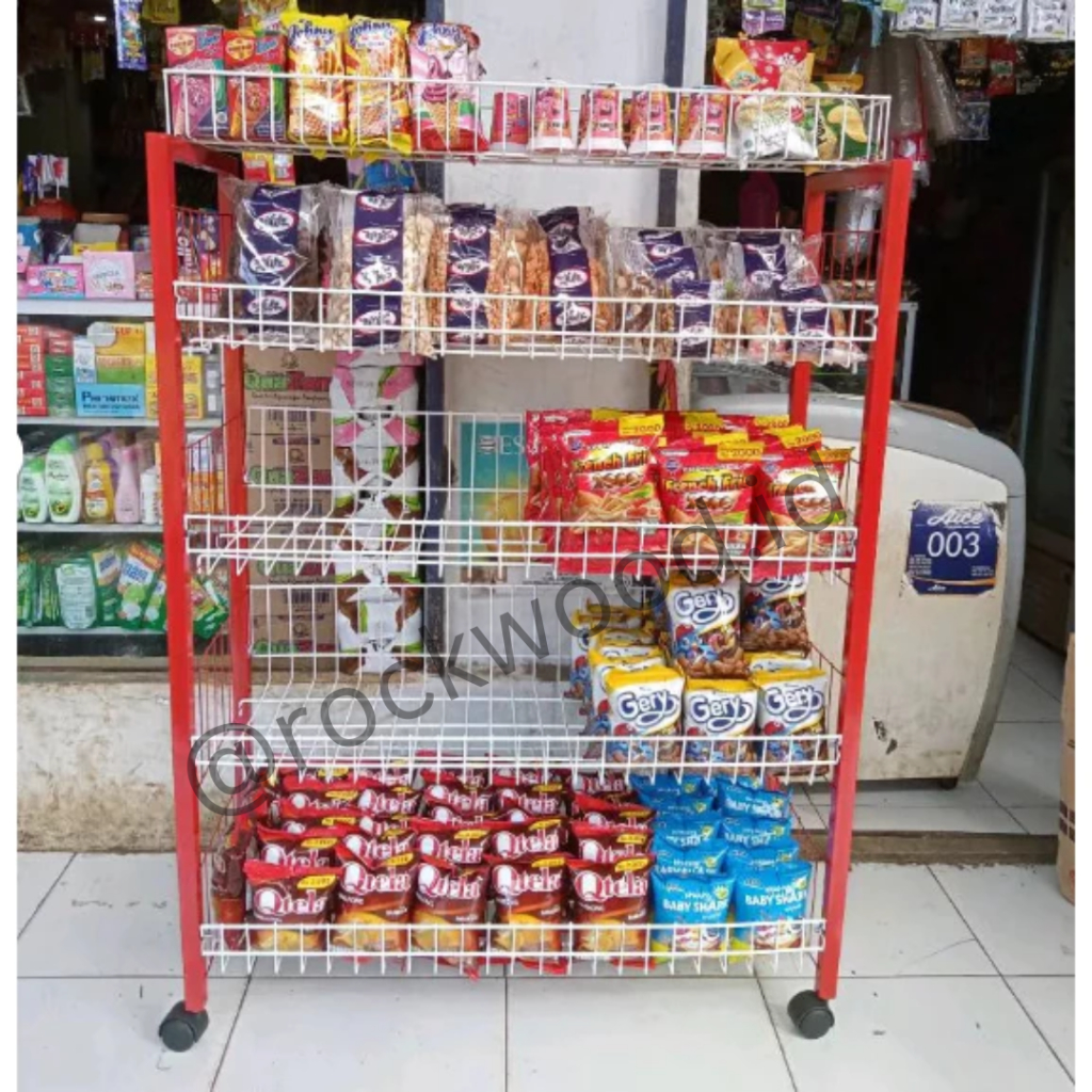 Rak Ciki Roda Rak Toko Warung Rak Mini Market Rak Display Rak Susun 5 Rak Besi Rak Serbaguna Murah Berkualitas Tebal Kuat
