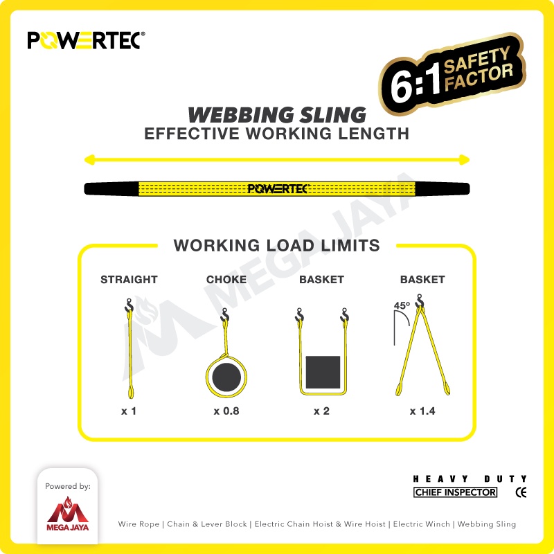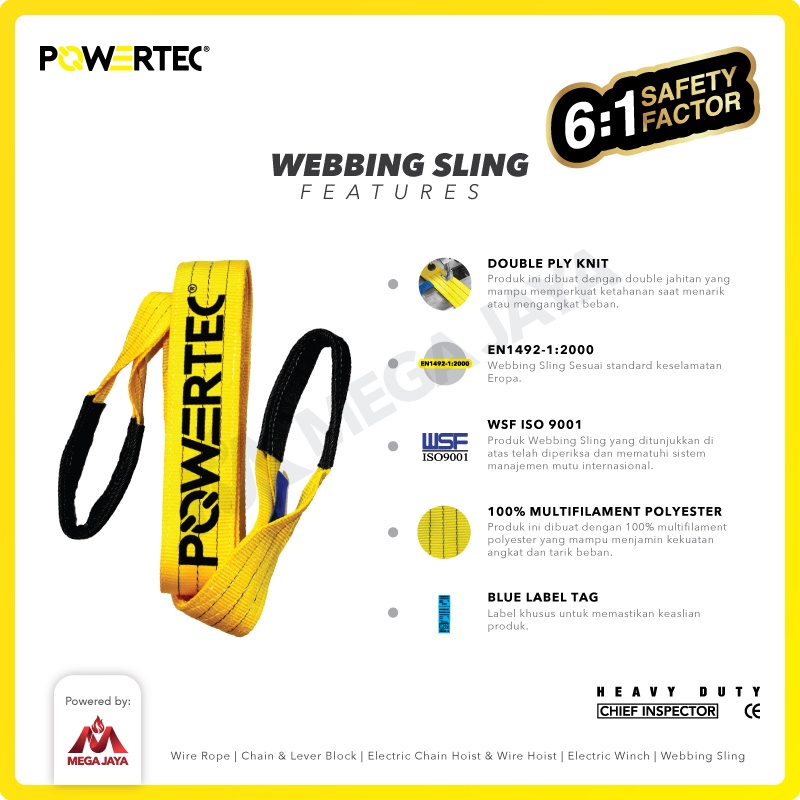 POWERTEC Webbing Sling Belt / Tali Angkat 3 Ton x 1 Meter Double Ply