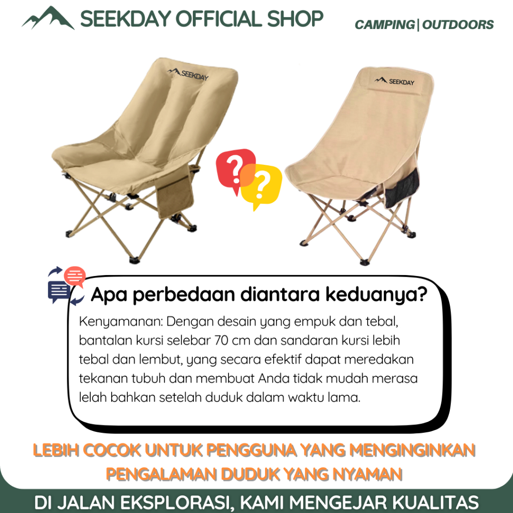 SEEKDAY Kursi Lipat Santai Outdoor Soft Isian Katun Tebal Kursi Sandaran Tinggi / Kursi Lipa Camping Bedan 180kg Lebar Kokoh