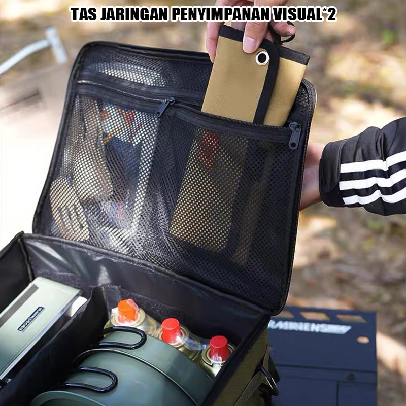 Tas penyimpanan taktis berkapasitas besar untuk luar ruangan, set panci dan kompor, tas penyimpanan tangki bensin anti-tabrakan, tas piknik berkemah, peralatan makan luar ruangan