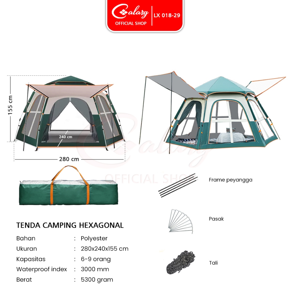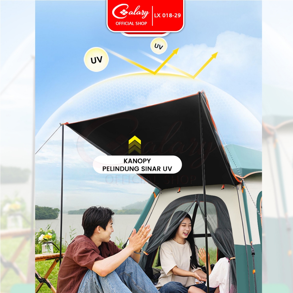 𝐂𝐀𝐋𝐀𝐑𝐘 Tenda Camping Besar 6-9 Orang Kanopi Otomatis Portabel 2 Pintu Kemah Outdoor 018-29