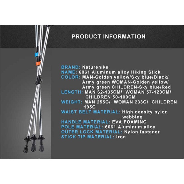 Naturehike Trekking Pole Pria / Waninta / Anak Nh17D001-Z Alloy