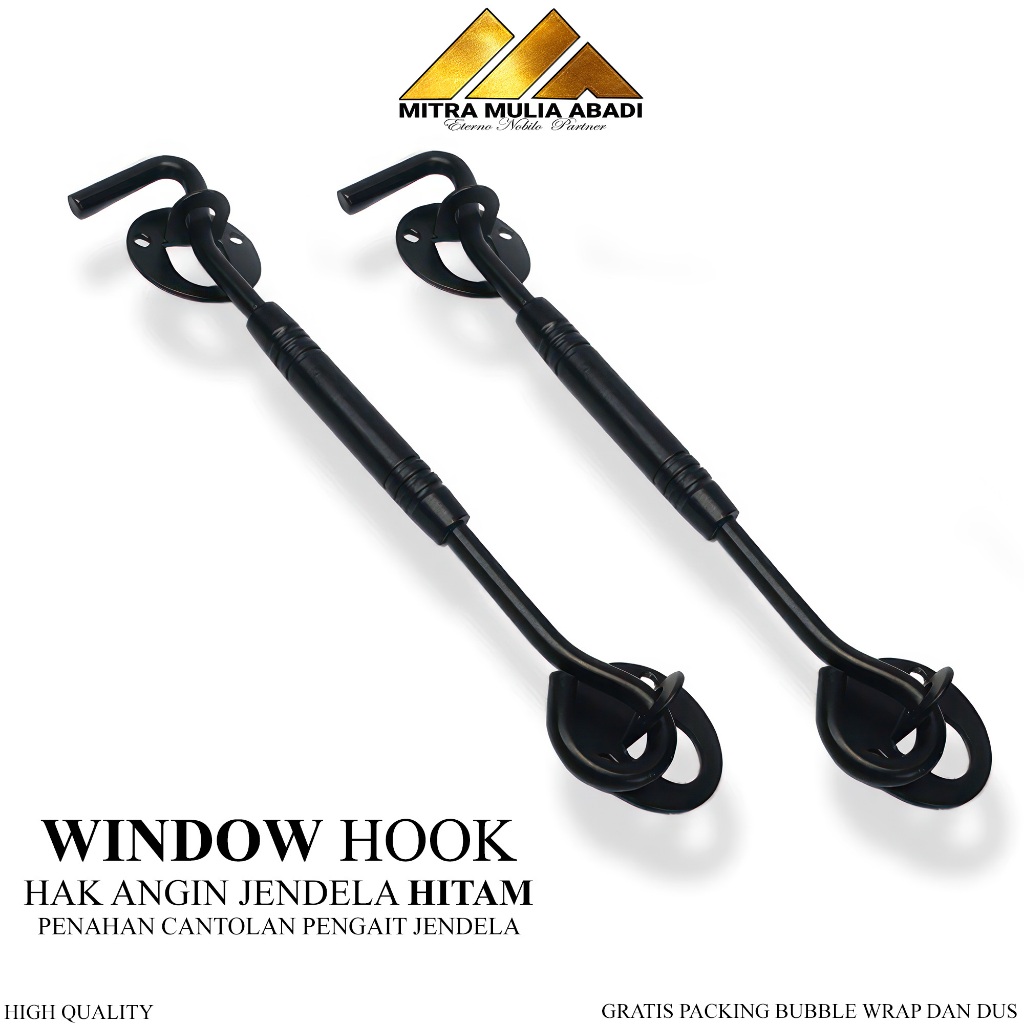 Hak Angin Hitam Lamskar Stainless l Penahan Cantolan Pengait Jendela-HITAM