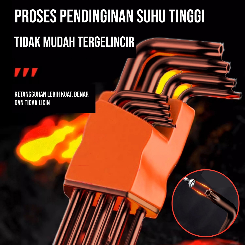 CUTA Kunci L Set 9 Pcs S2 Torx Bintang Hex Key Kunci L Set Lengkap Panjang Long Short Pendek Lubang