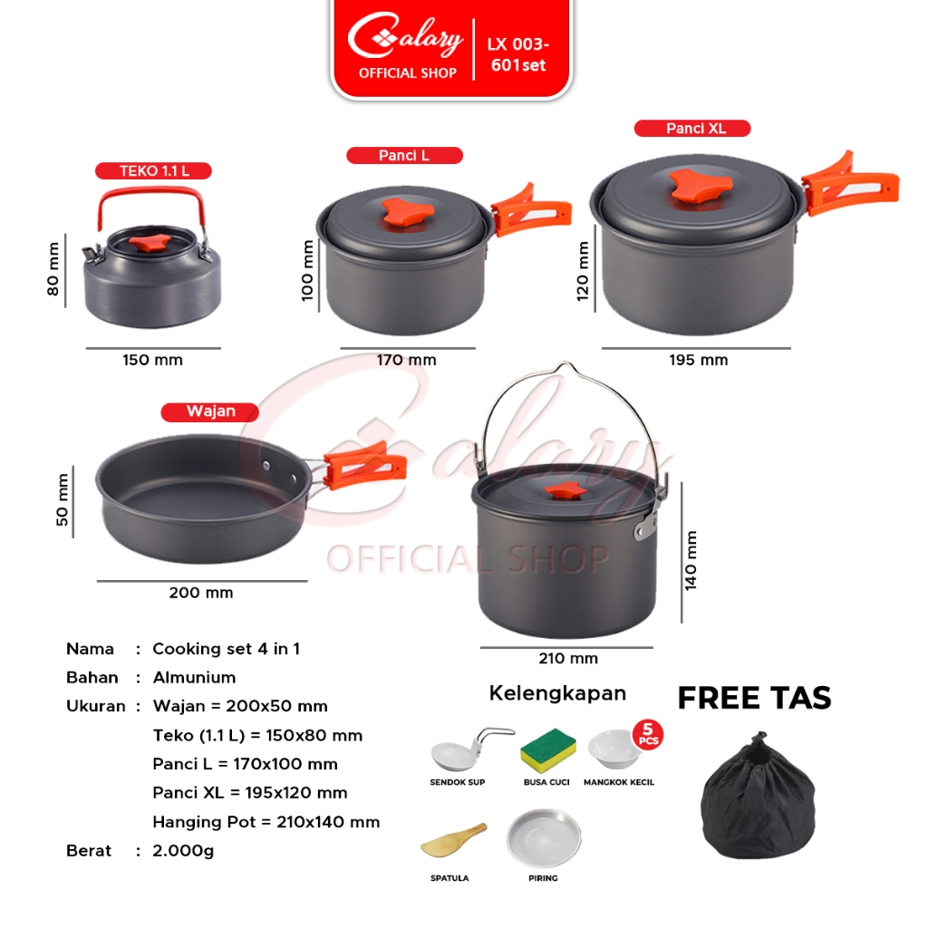 𝐂𝐀𝐋𝐀𝐑𝐘 Panci Alat Masak Nesting 5in1 6 Piknik Multifungsi Perlengkapan Camping Luar Ruangan Portable 003-601