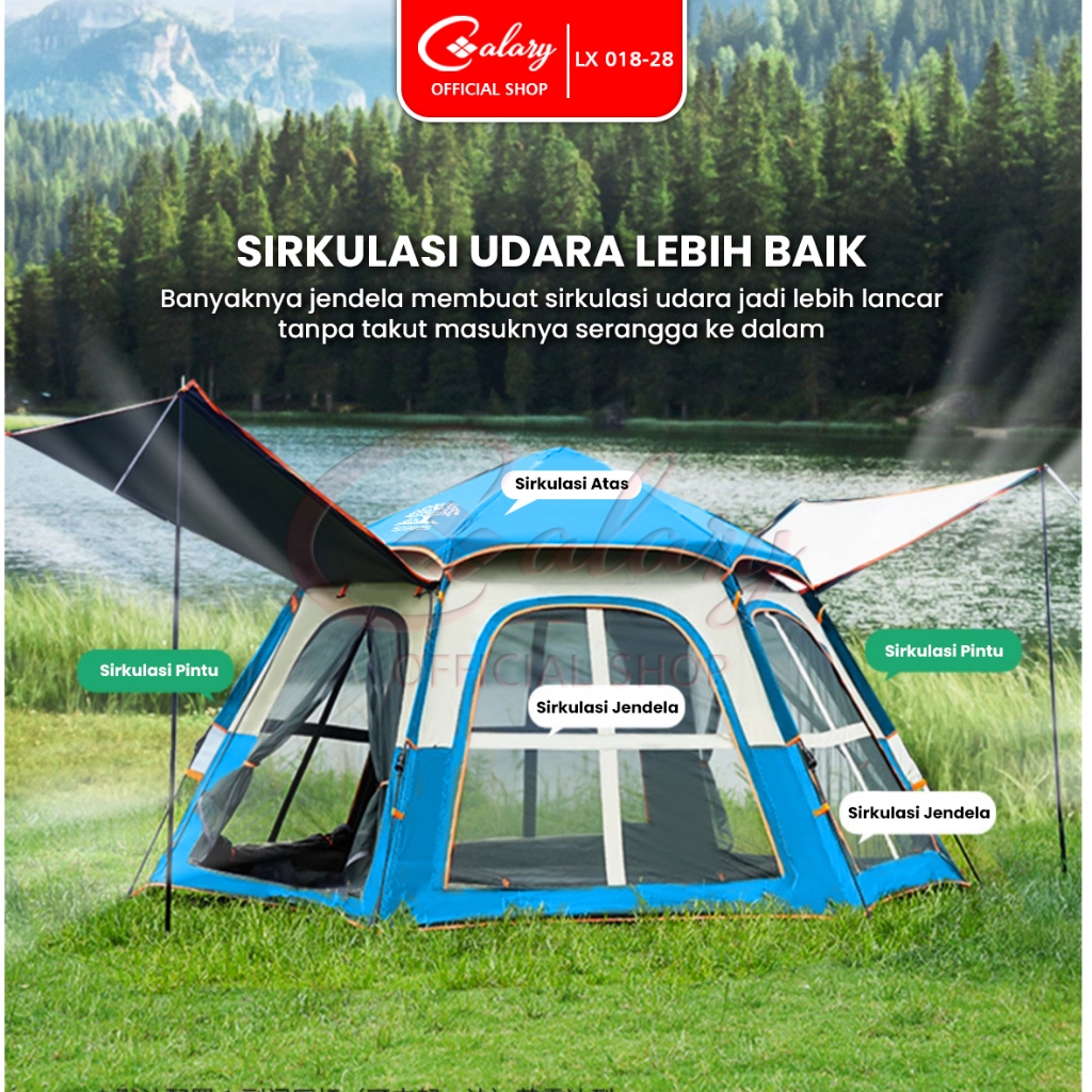 𝐂𝐀𝐋𝐀𝐑𝐘 Tenda Camping 2 Pintu Kemah 3-5 Orang Outdoor Indoor Kanopi Besar Otomatis Portabel 018-28