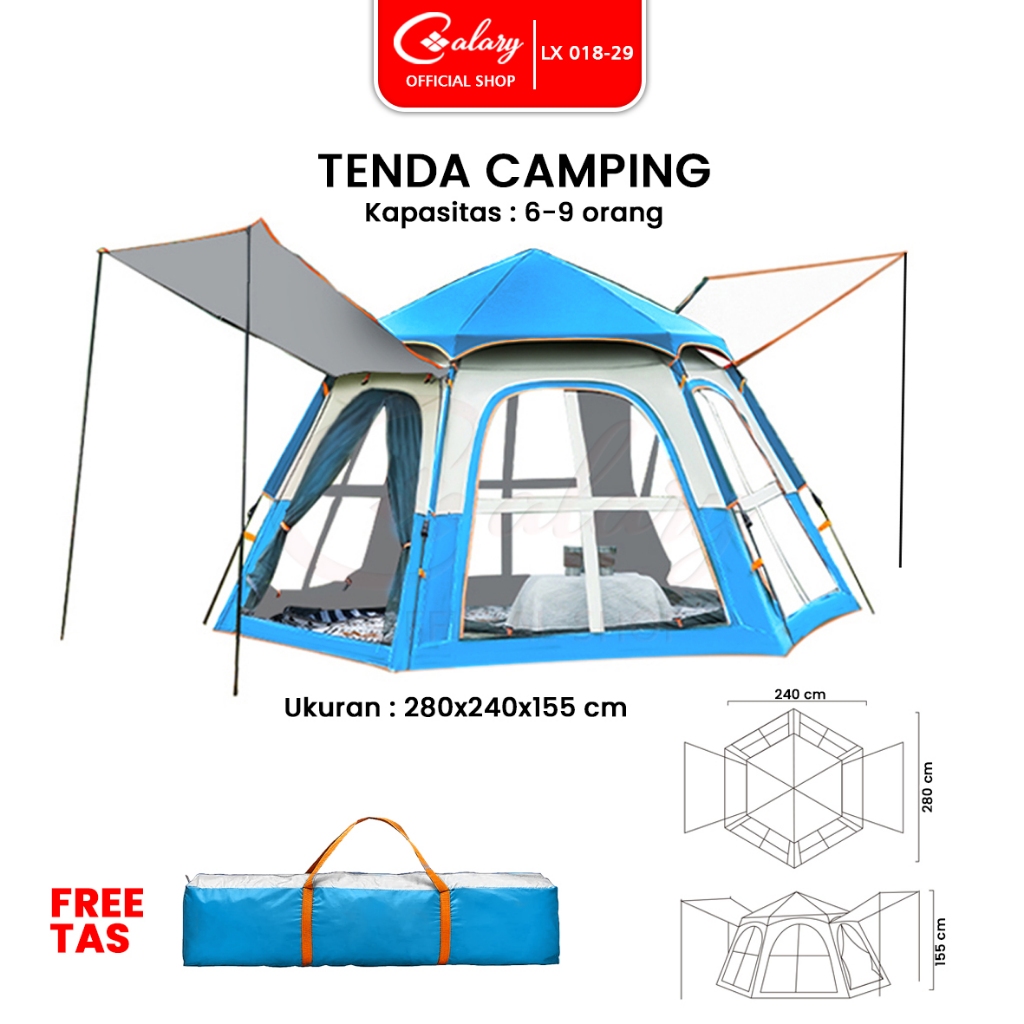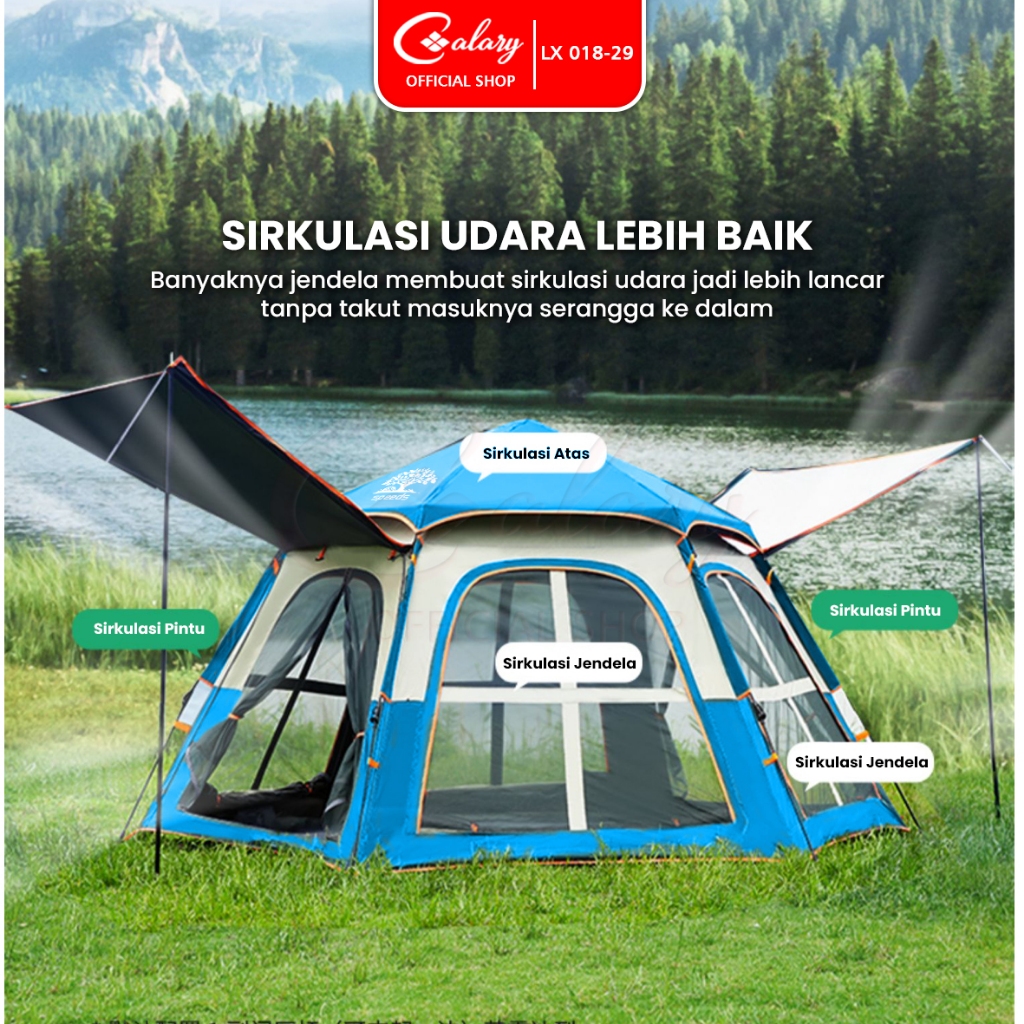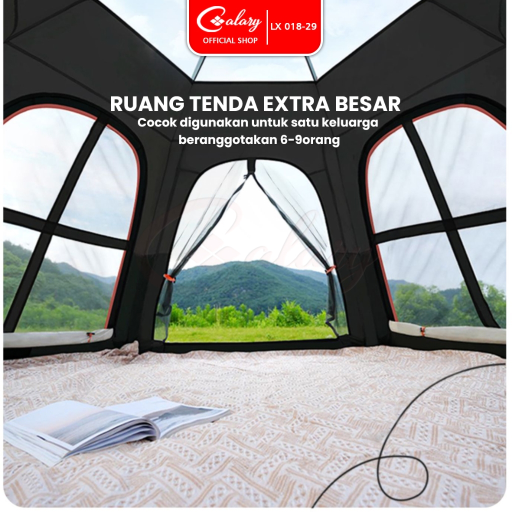 𝐂𝐀𝐋𝐀𝐑𝐘 Tenda Camping Besar Otomatis Portabel Muat 6-9 Orang 2 Pintu Kemah Outdoor Indoor Kanopi 018-29