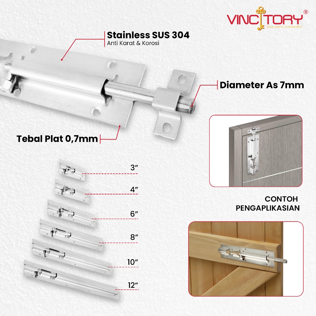 Grendel Slot Pintu Jendela Stainless Kualitas Tebal Anti Karat Kunci Pintu Selot Jendela Vincitory