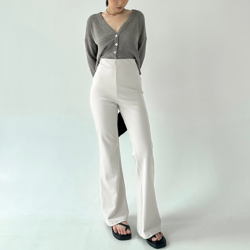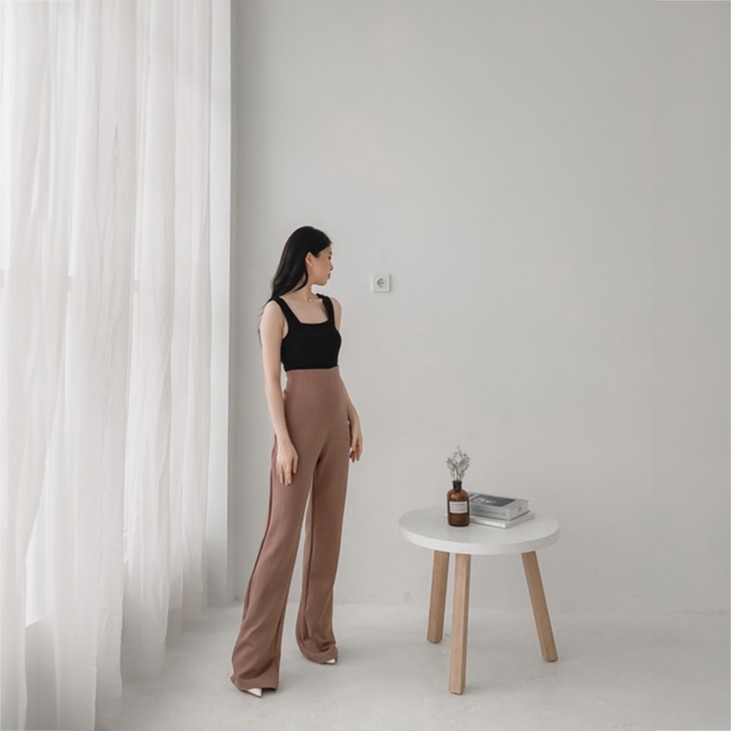 Kawisari - Evelyn Flare Pants Highwaist Cutbray Scuba Premium - Celana Adem Melar Panjang