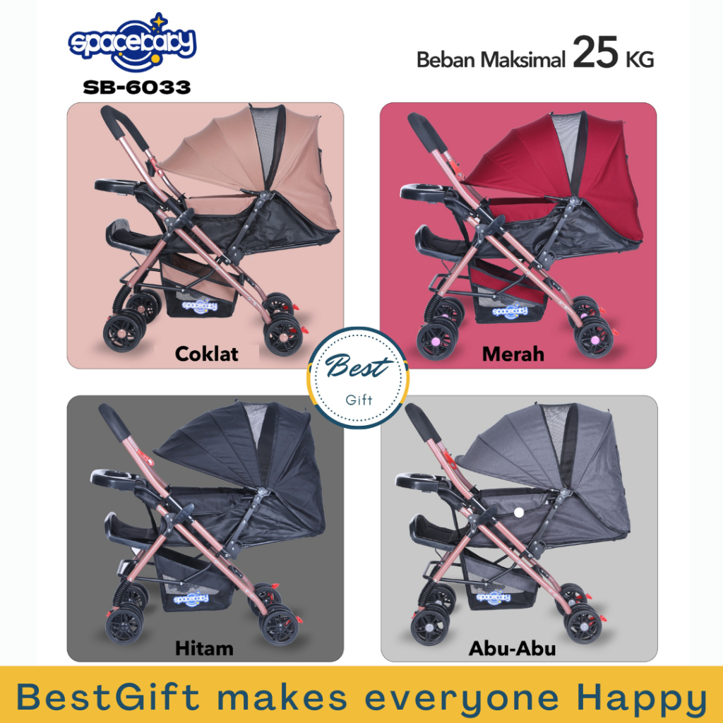 [Star]BABY STROLLER SB-6055 (REVERSIBLE STIR) SPACEBABY (size XL, roda BESAR, stir dua arah) // SB-6055A // SB-6033 // S