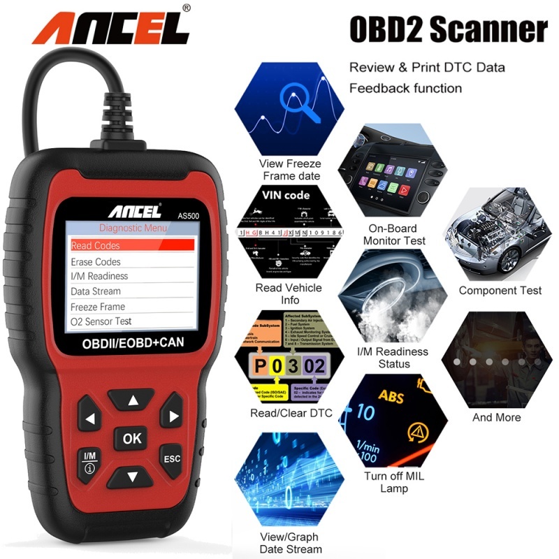 Ancel AS500 OBD2 OBD 2 Scanner Mesin Pembaca Kode OBD Mobil Alat Diagnostik Multibahasa