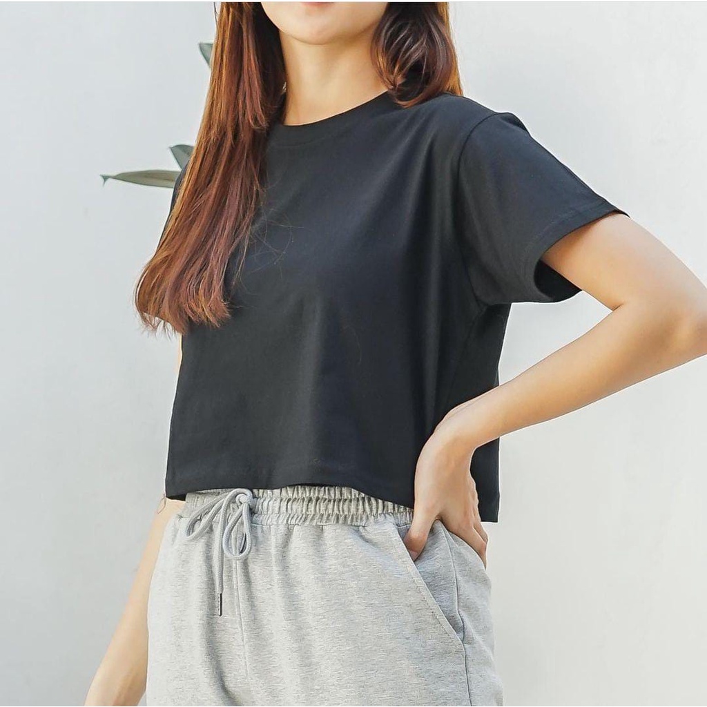 CROP T0P POLOS ONECK COTTON BAJU KAOS TUMBLR CROP TEE TSHIRT KAOS KOREA FASHION WANITA