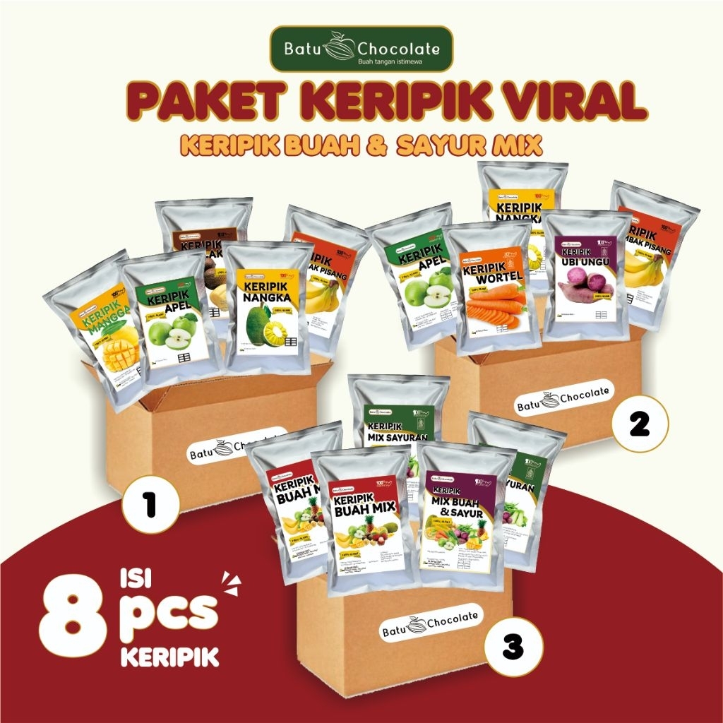 Batu Chocolate Paket Keripik Buah Sayur Mix Viral Isi 8 Pcs Keripik / Paket Keripik Buah Sayur Viral