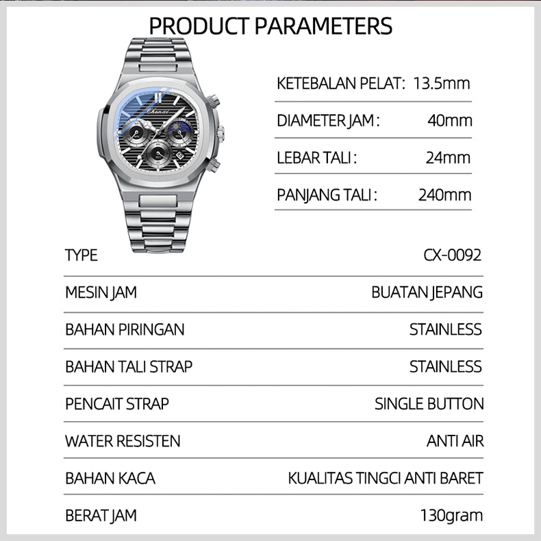 Jam Tangan Otomatis CHENXI 0092B Pria dewasa cowok terbaru Analog Stainless Steel Bercahaya Tanggal Stylish fashion kasual olahraga Original Anti Air kado