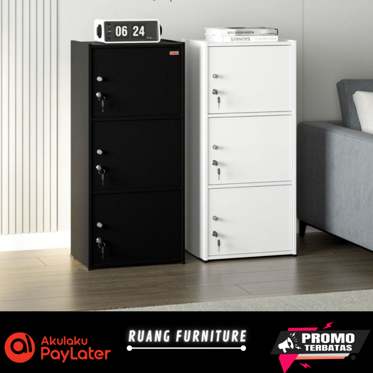Lemari Plastik Rak Pintu 3 Susun Minimalis / Lemari Buku Serbaguna / GENIO LSG 3A