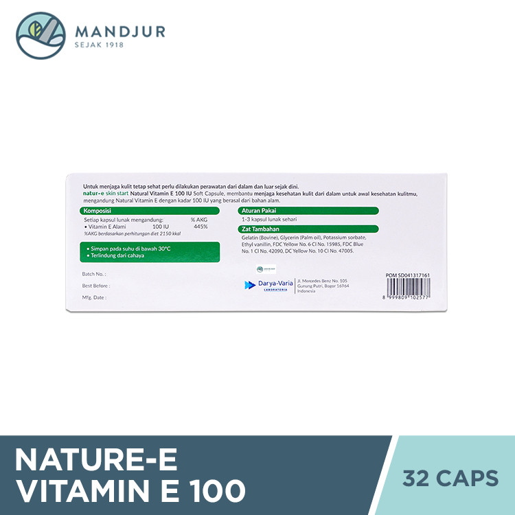 Natur E Natural Vitamin E 100 IU Isi 32 Kapsul Untuk Kesehatan Kulit Dan Mencerahkan BPOM HALAL TERLARIS