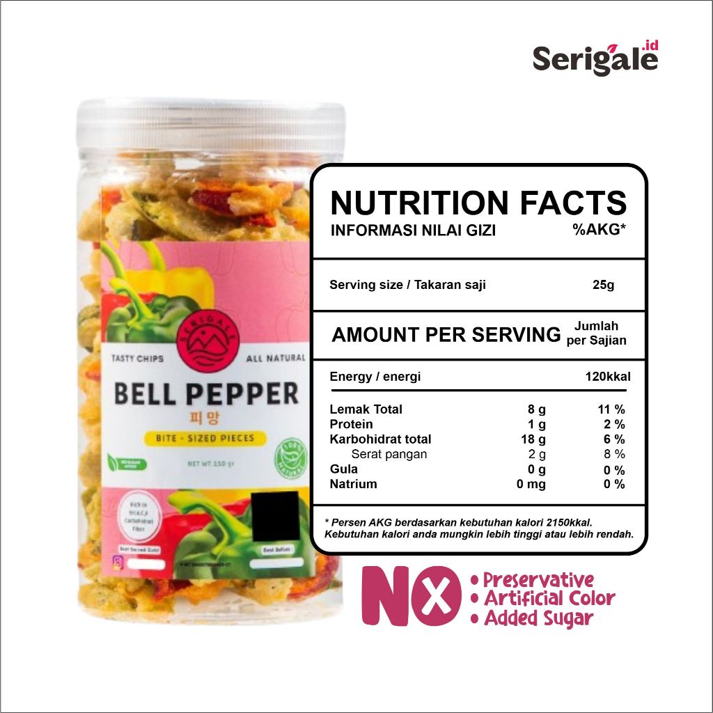 Serigale Keripik Sayur Paprika Premium Bell Pepper Chips Camilan Diet Sehat Rendah Kalori