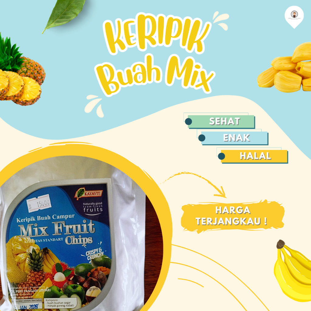 Keripik Mix Buah Kemasan / Kripik Mix Buah 100 Gram - Ampiran Camilan Djowo