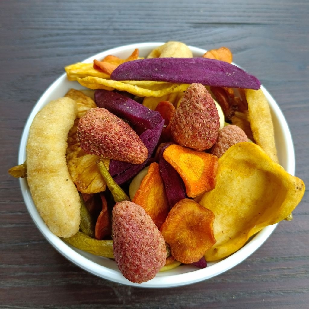 Batu Chocolate Keripik Buah Dan Sayur Mix Kemasan Besar Berat 1/4 Kg Dan 1/3 Kg / Extra Keripik Strawberry / Keripik Bua
