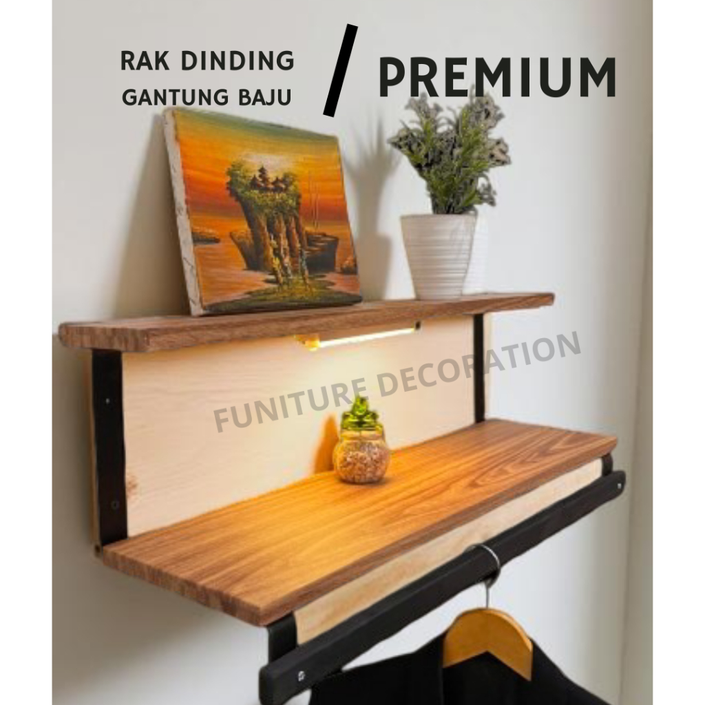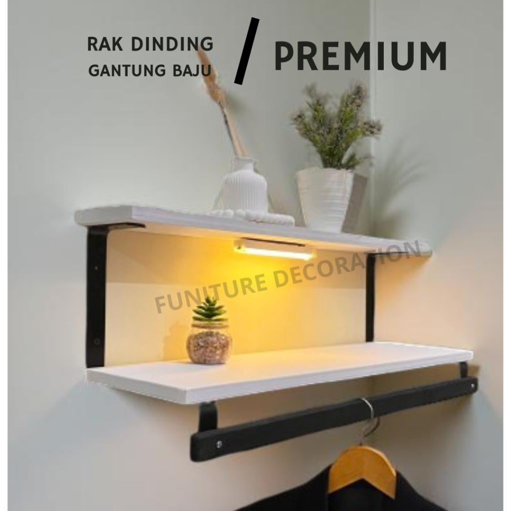 Rak Ambalan Tingkat 2 Multifungsi Ukuran 75 x 20 cm Untuk Buku dan Gantungan Baju
