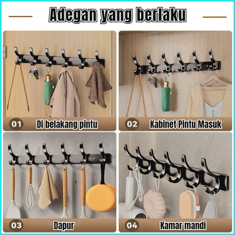 Gantungan Baju Pintu Bor Bebas Aluminium Tebal Pakaian Pintu Kait Dinding Gantungan Penyimpanan Kamar Mandi Toilet Rak G
