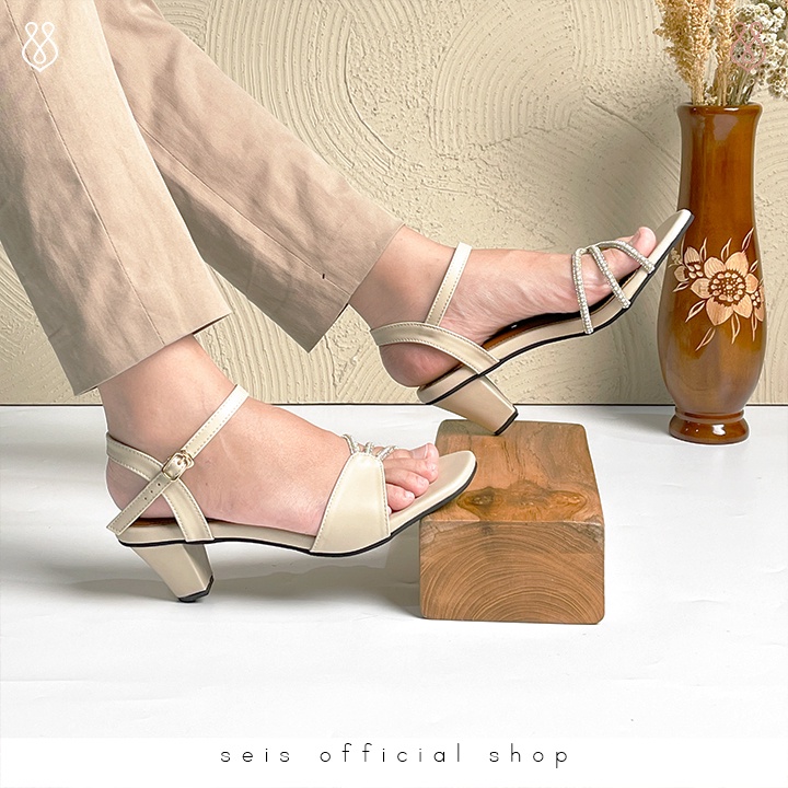 SEIS Divori - Simple Flat Sandal - sandal Pesta Wanita heels 5 cm tunangan pernikahan enggament wedding - Terlaris