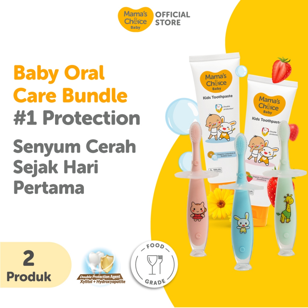 Pasta Gigi Anak + Sikat Gigi Bayi 0+ Bulan | Mama's Choice Baby Oral Care Bundle - My First Toothbrush (Sikat Gigi Baby)