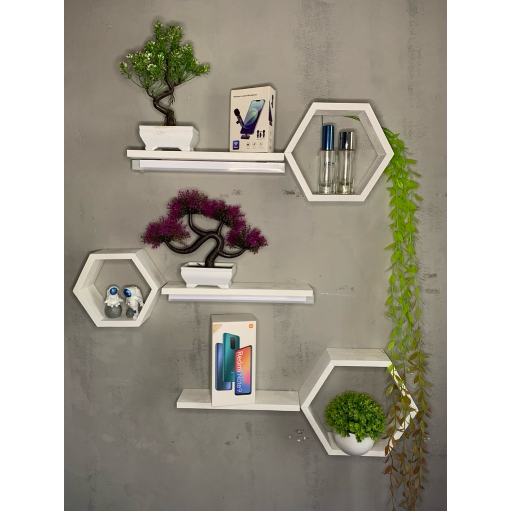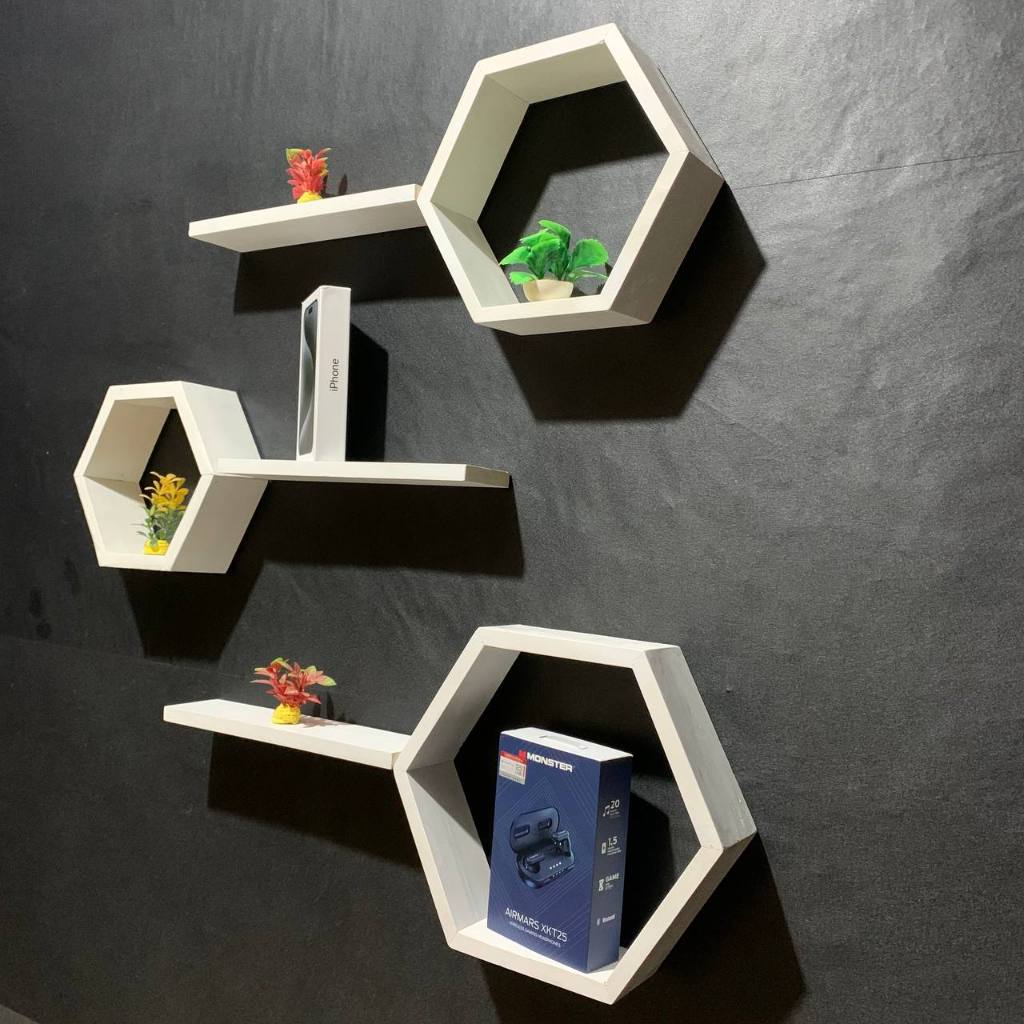 Rak dinding hexagonal 1 set hiasan ambalan dinding aesthetic