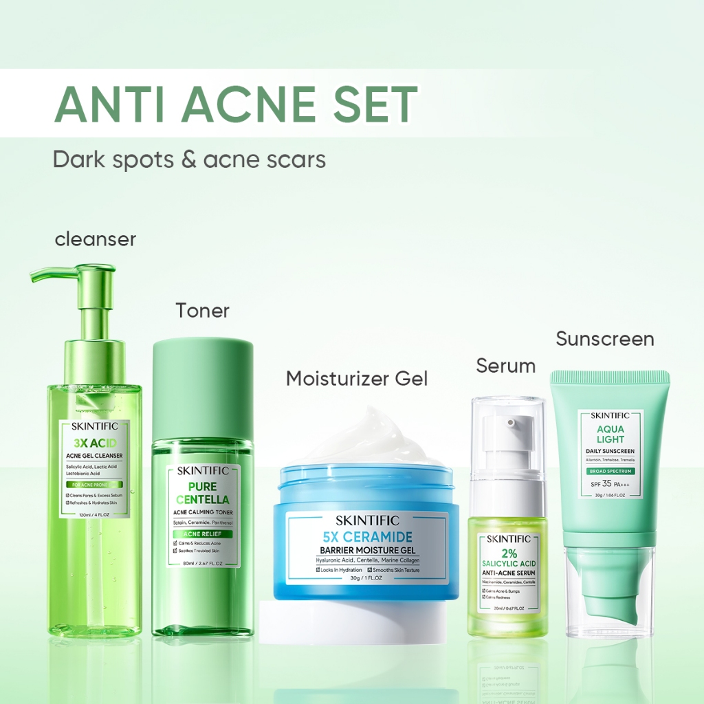 [Mall] SKINTIFIC OFFICIAL STORE 5 PCS SKINCARE SET Serum Moisturizer Gel Toner Sunscreen Cleansing Mouss Facial Wash Day