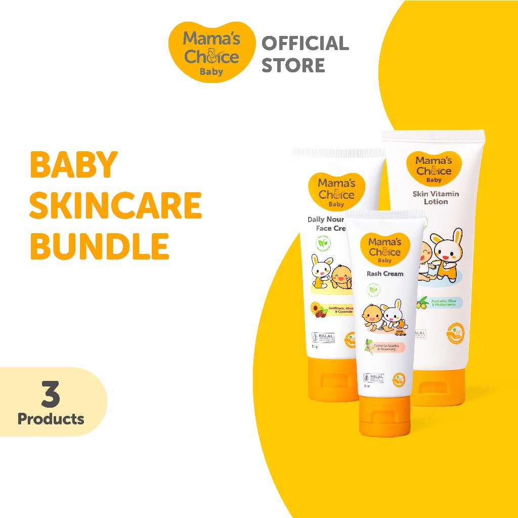 Baby Skincare Bundle Mama's Choice | Baby Face Cream, Skin Vitamin Lotion, Baby Rash Cream | Krim Wajah Bayi Lotion
