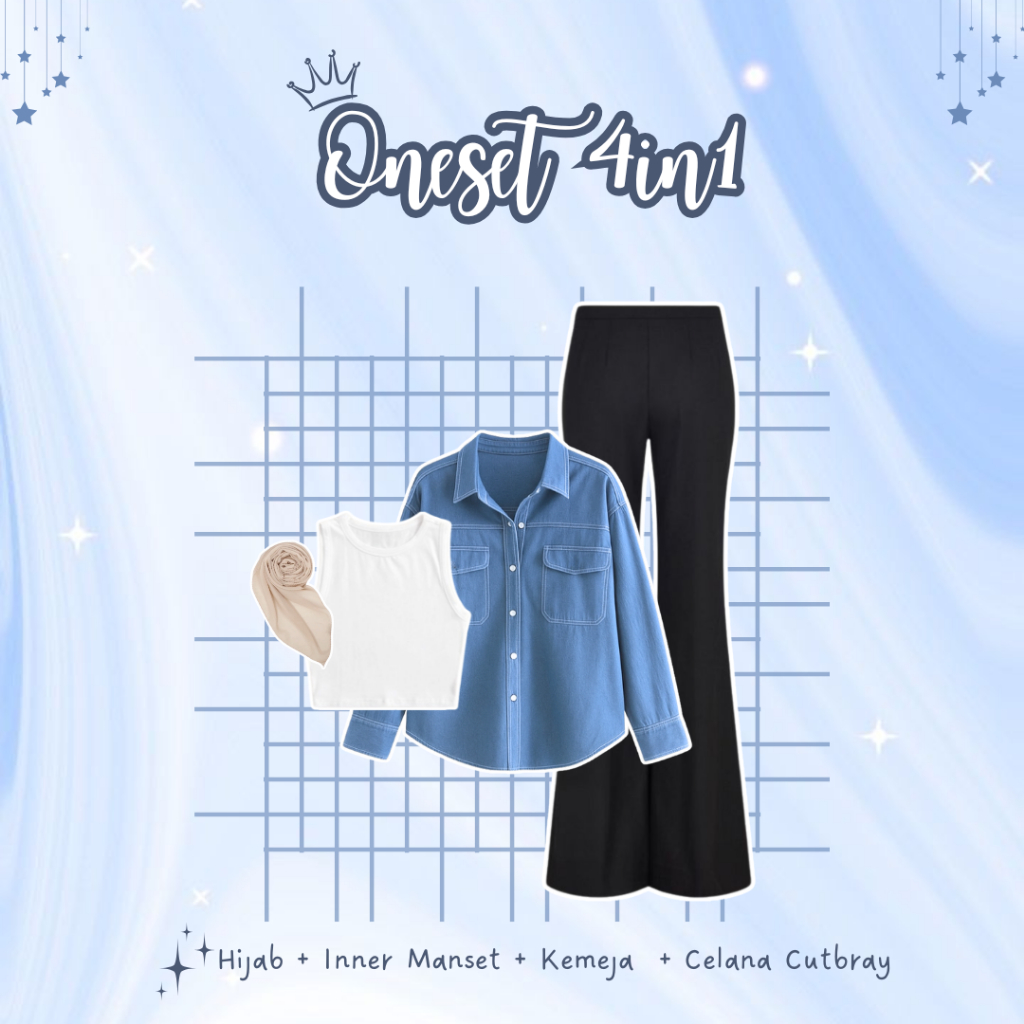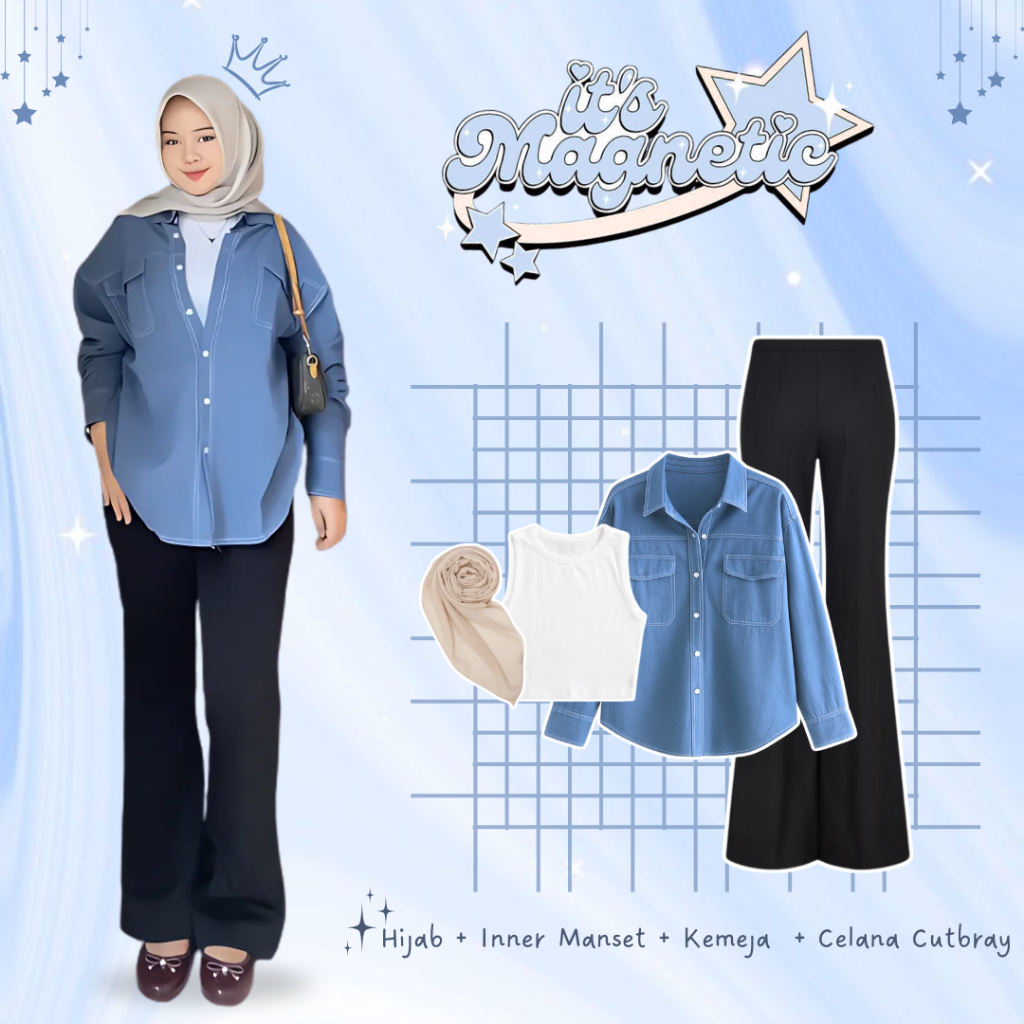 F·MIGA C125 Korean High Waist A Line 3 4 Denim Rok Jeans Midi Wanita Biru