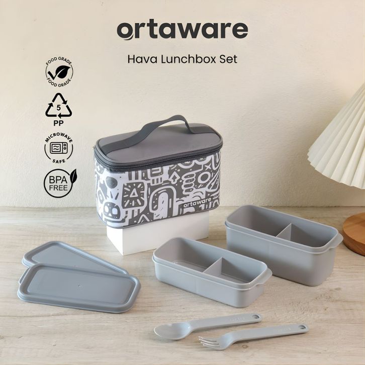 Lunchbox Set Tas + Tempat bekal 2 sekat + Sendok Garpu