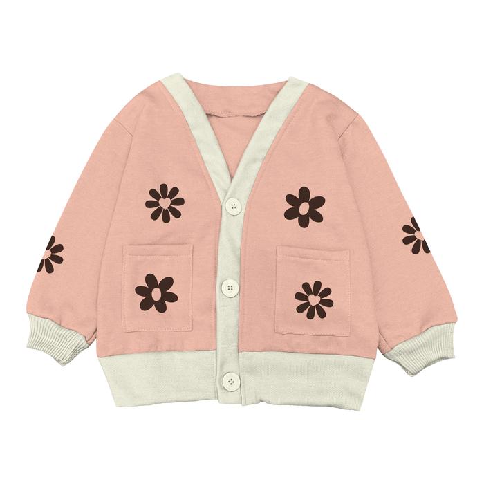 Kardigan Cardigan Anak Mecukids Flower Untuk Perempuan Dan Laki-Laki Umur 4 5 6 7 8 9 10 11 12 Tahun - Kopi, M 3-4 Tahun