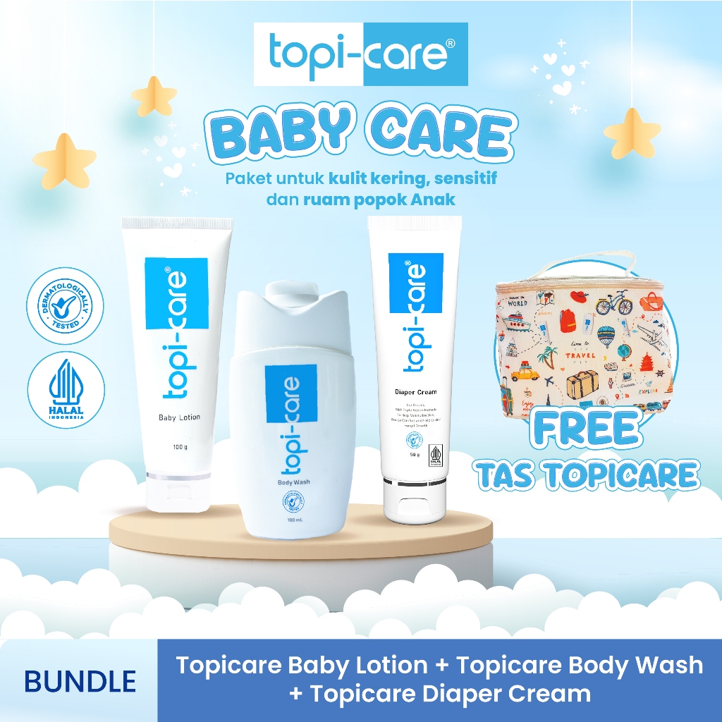 PAKET SKINCARE BAYI DAN ANAK | PERAWATAN KULIT KERING, SENSITIF DAN RUAM POPOK (TOPICARE BODY WASH + TOPICARE BABY LOTION + TOPICARE DIAPER CREAM)