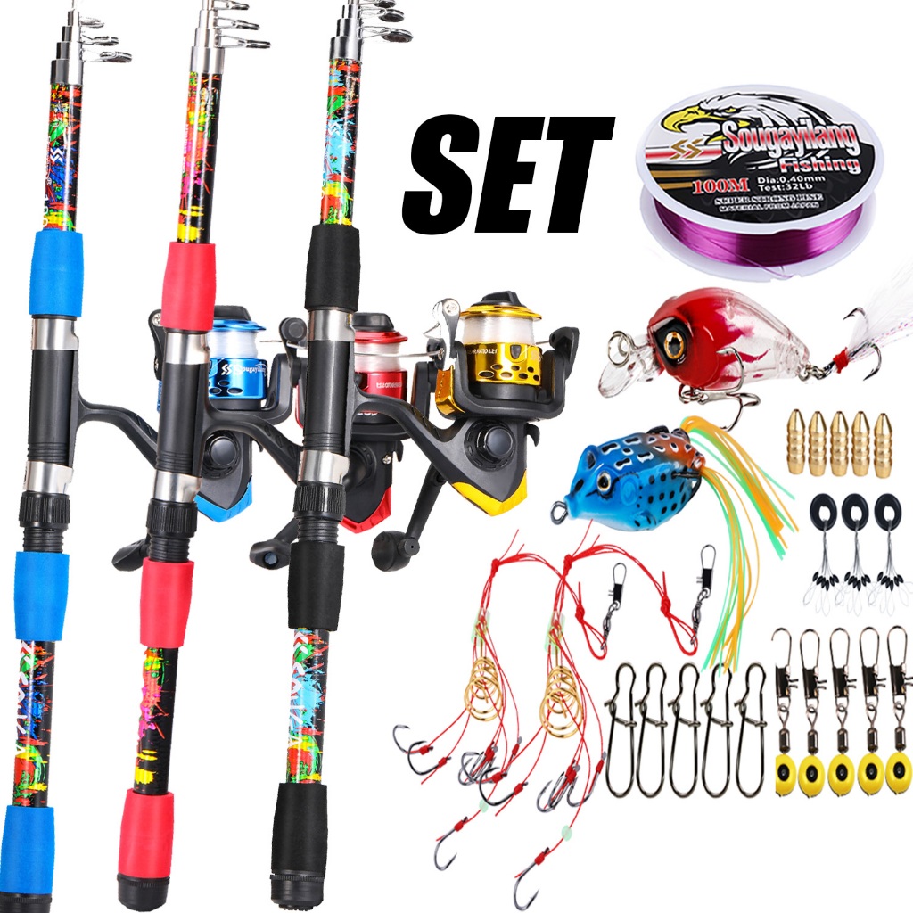 Set memancing Sougayilang 180cm Pancing teleskopik Ultralight dan set lengkap gulungan ikan 5.2: 1 Cocok untuk pemula da